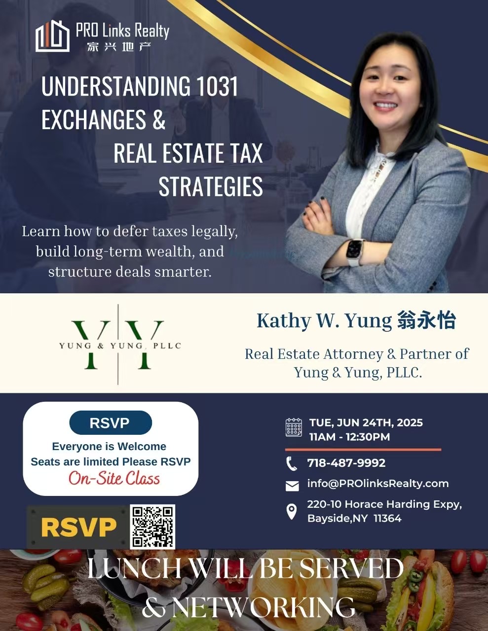 Join us for an exclusive seminar with Kathy W. Yung, Esq.—partner at Yung & Yung, PLLC—on “Understanding 1031 Exchanges & Real Estate Tax Strategies.”