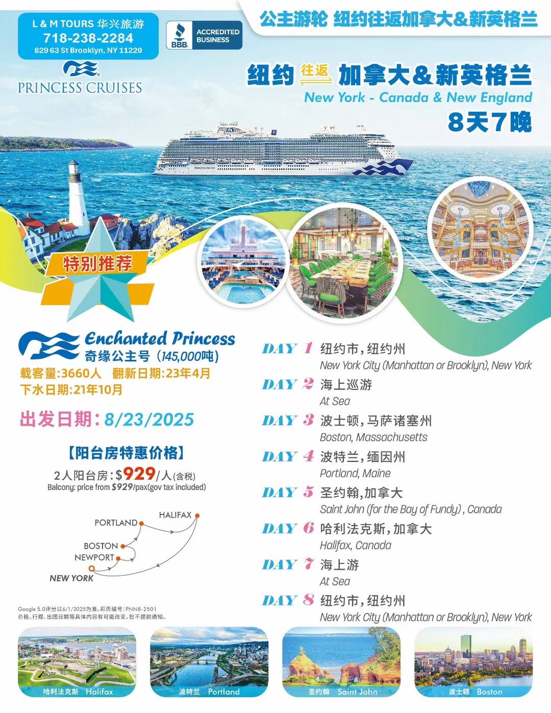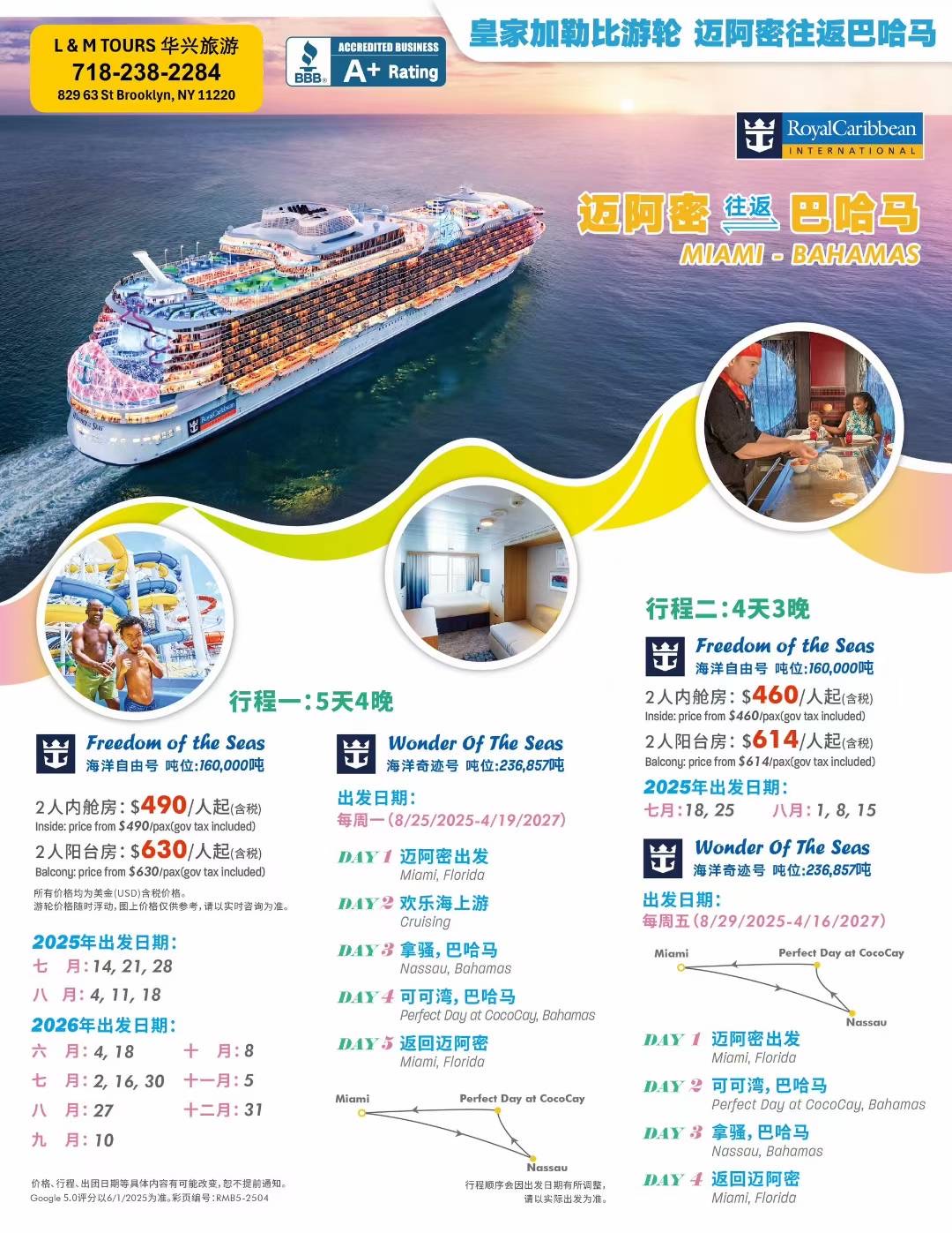 华人旅游社定制服务 法拉盛包车小团 精致路线更贴心 纽约旅游景点推荐大全 吃住行游一站安排 华人公司服务更安心 法拉盛中文导游团队 专业讲解美国历史文化 适合长辈与亲子家庭纽约出发千岛湖+多伦多+尼亚加拉五日游 法拉盛报名享折扣豪华邮轮假期,多款精选路线,总有一款适合您!咨询热线:华兴旅游 718-238-2284