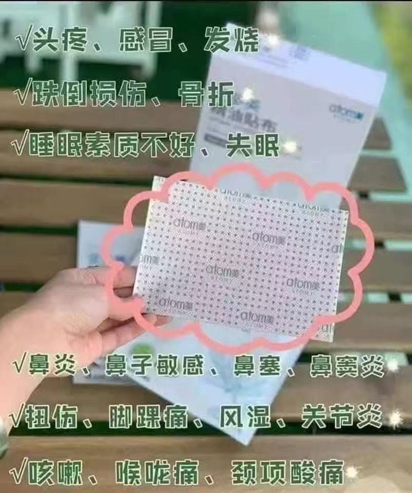👍🏻关节疼痛:将精油贴布貼在关节疼痛区域的顶部和后面