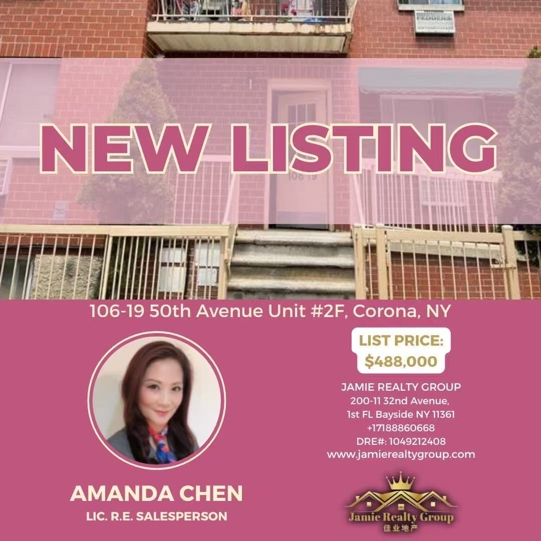 🎈新上市可乐娜房子出售🎈獨家代理皇后区Corona的最佳位置 . 靠近皇后区购物中心、花旗球场和Flushing Meadow Park .Q23巴士到Forest Hills E&F车。Q58直達法拉盛·距离7号地鐵幾條街106-19 50 Ave 2F 2房1浴. 客廳帶陽台.多衣櫃.很光亮·廚房新檯面·實木地板,管理費包含煤气、暖气和冷热水350/月,還有7年減稅中,實用面積近700尺 只售:$48.8萬 有意請電:917-622-3998