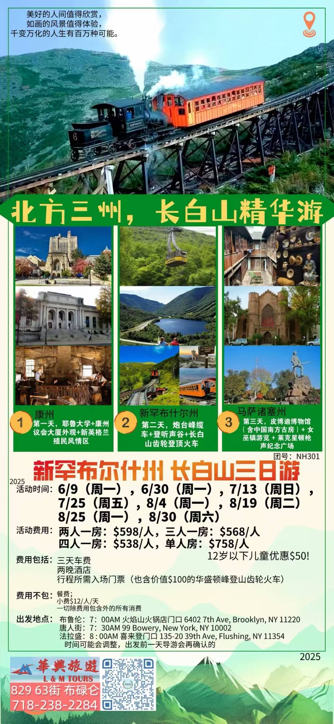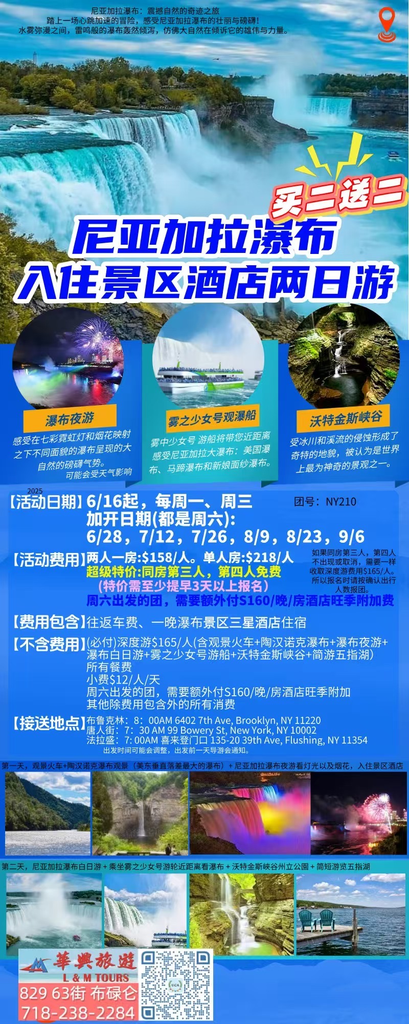 美国纽约华人168-纽约旅游行程怎么安排?法拉盛旅行社推荐经典一日游/三日游线路美东旅游团首选推荐 自由女神+白宫+哈佛大学 纽约法拉盛团出发 纽约法拉盛包车旅游服务 华人导游+行程定制 适合家庭聚会和公司出行 纽约华人热门旅游景点TOP10 自由女神、帝国大厦、布鲁克林大桥全收录 纽约出发尼亚加拉瀑布团推荐华人导游讲解 深度游览三日两夜全含 纽约到波士顿旅游推荐 跟团游含名校参访+海鲜美食 自驾或包车皆可 纽约华人旅游网热门产品推荐法拉盛旅游团线路实时更新 优惠多多 纽约法拉盛中文旅游社推荐 全年365天发团 景点选择灵活行程合理美国纽约华人168-多样巴士旅游线路,精彩行程任您挑选!华兴旅游,用心服务每一站!26年经验,放心出游!