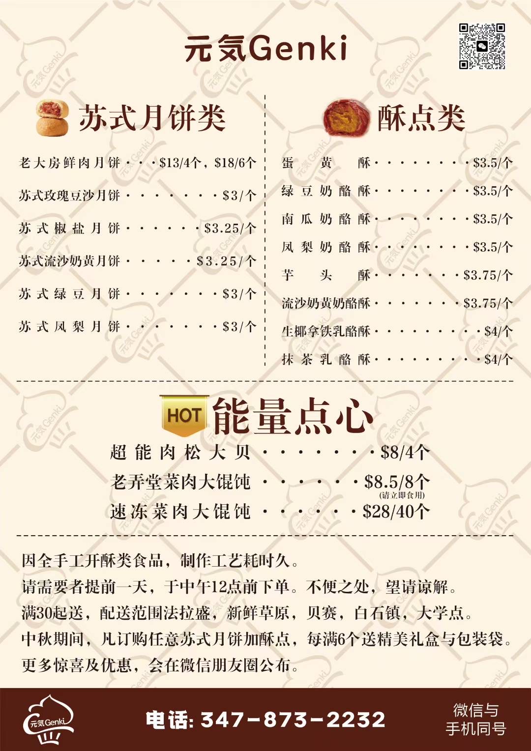 各种苏式月饼,酥点,甜咸都有,口口经典。外酥里嫩,一口鲍汁。这家店就叫元気点心,上海师傅打造。