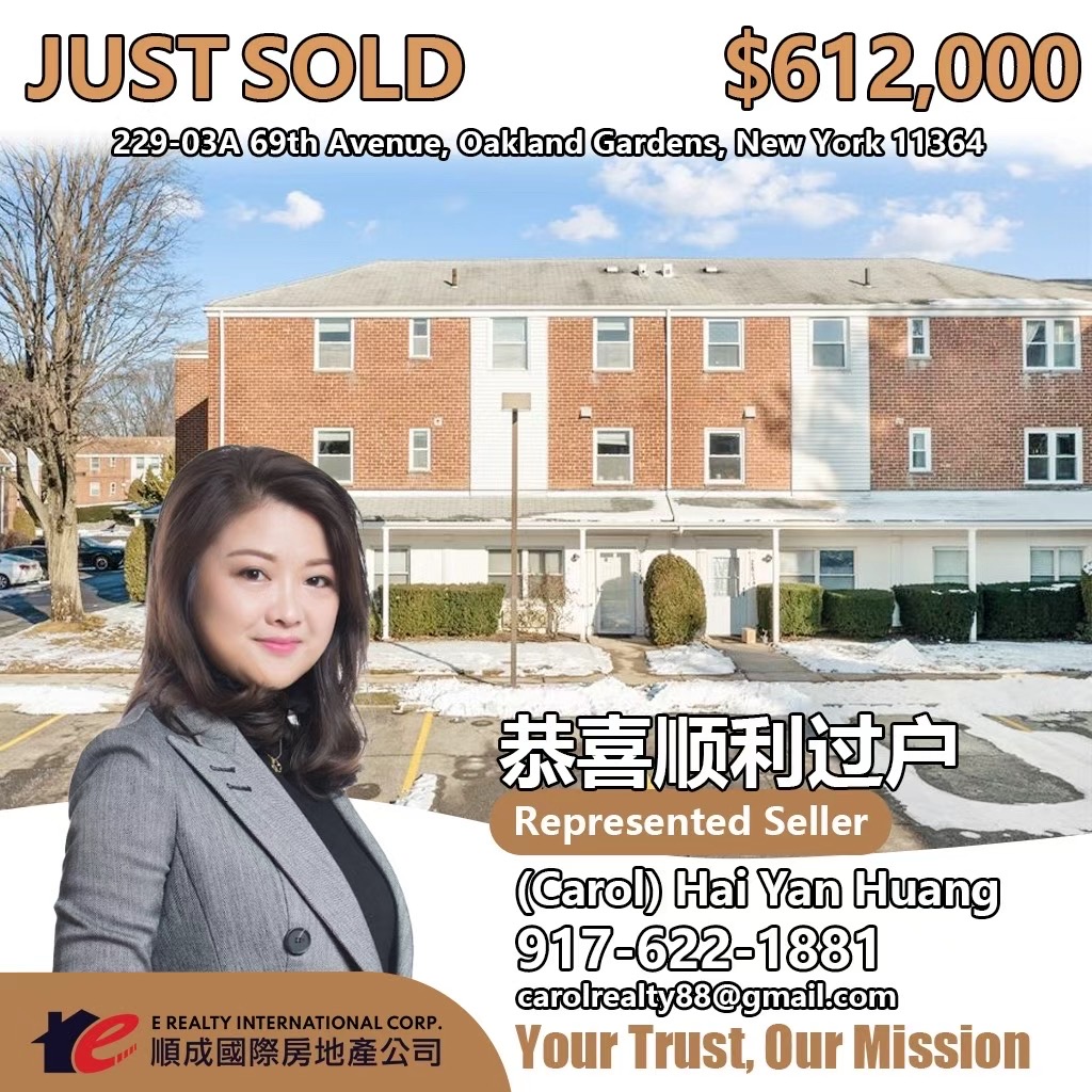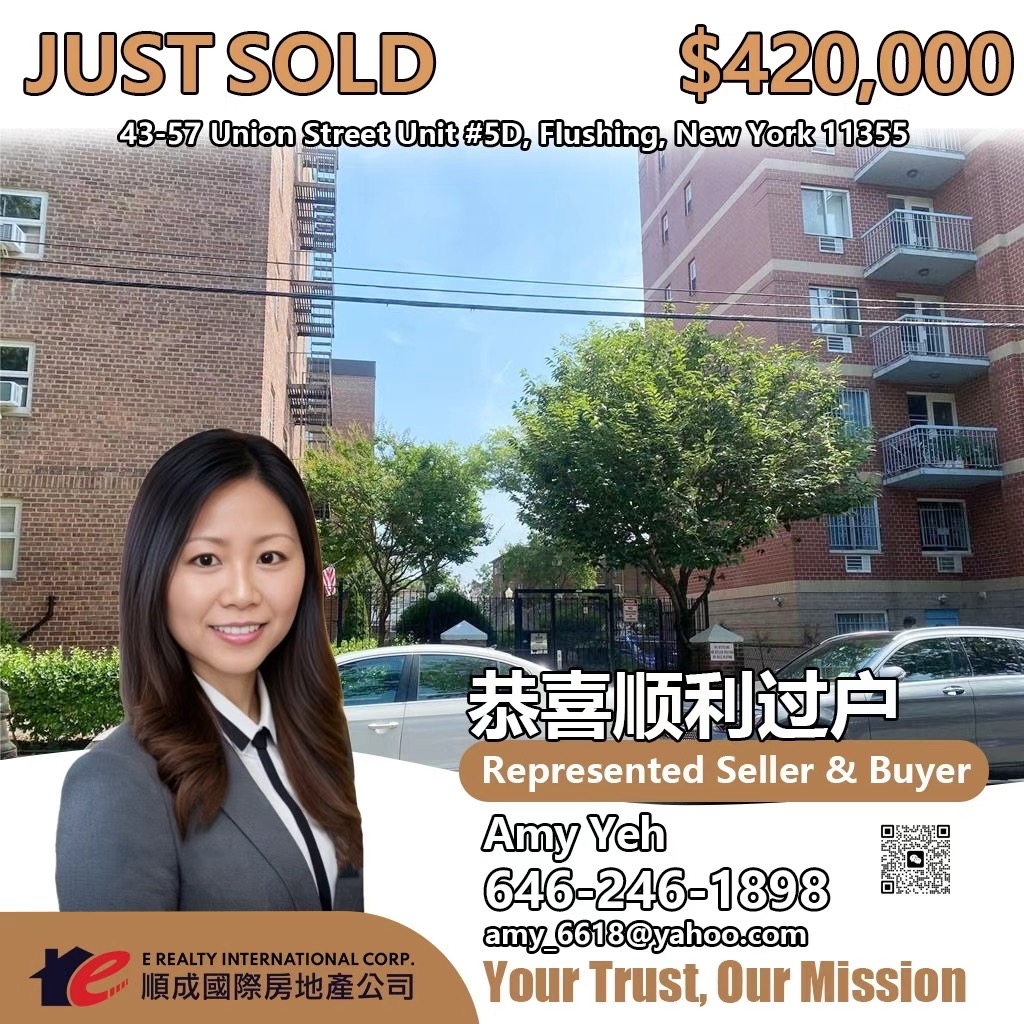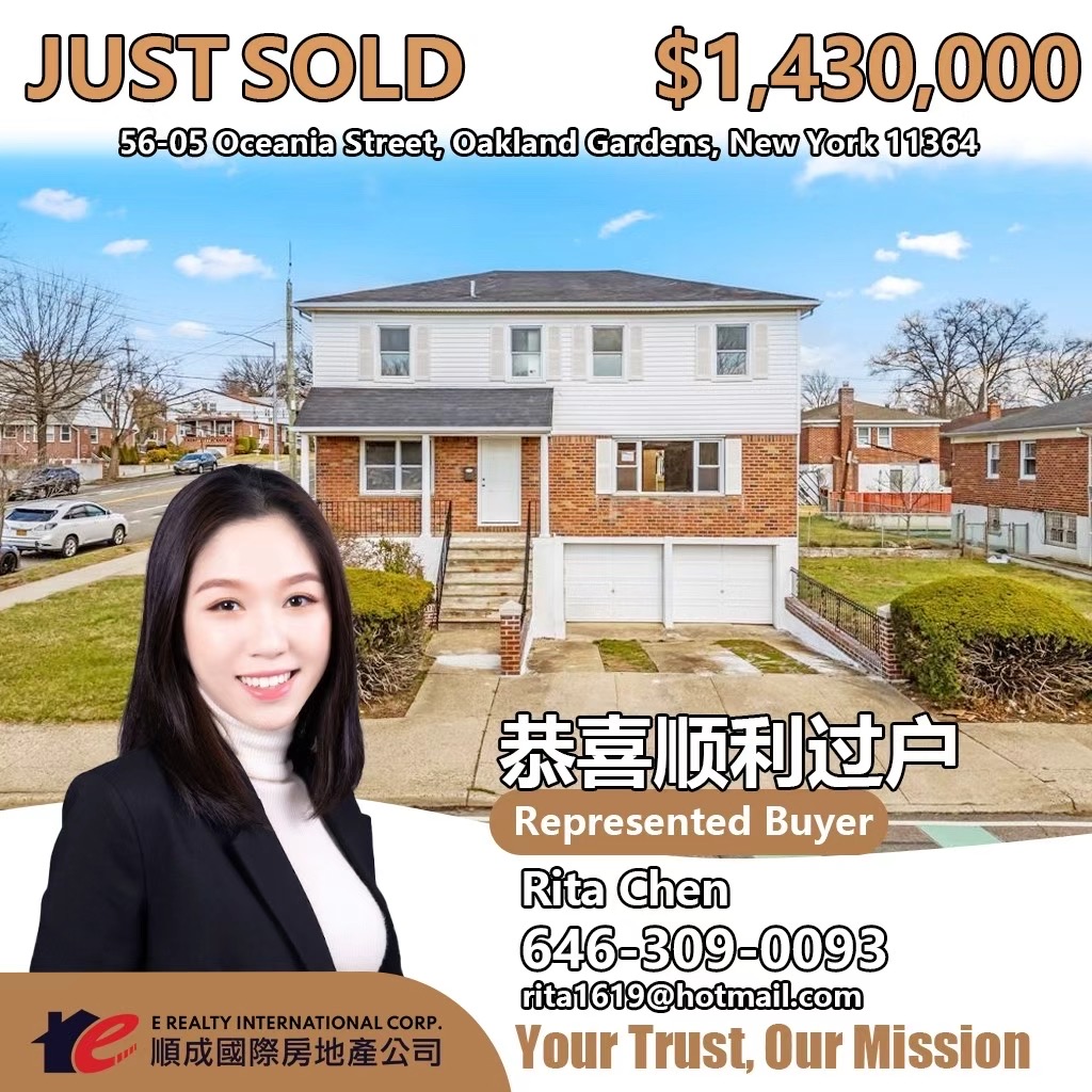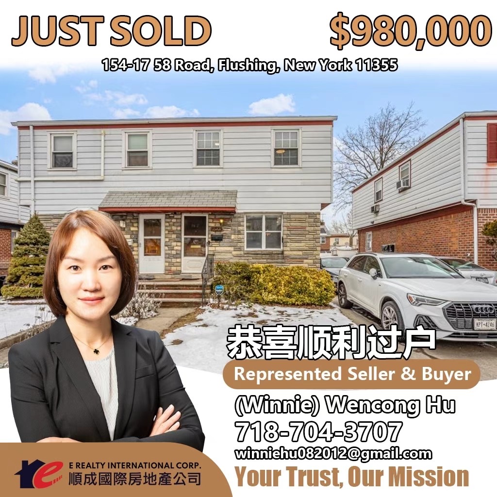 纽约地产经纪人全攻略:法拉盛地产公司与经纪人服务详解|华人买房租房投资首选平台 E Realty Int’l Corp. 顺成国际房地产 恭喜以下同事顺利签合同/过户! 祝你们的业绩越来越好,成单不断!欢迎各位客户委托顺成买卖/出租,我们将为您提供最优质的服务!