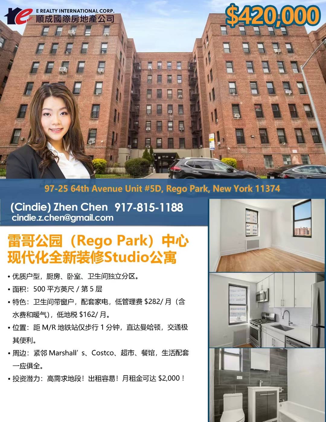 皇后区雷哥公园学区房公寓出售 周边配套齐全雷哥公园包家具公寓出售 拎包入住 可出租可自住