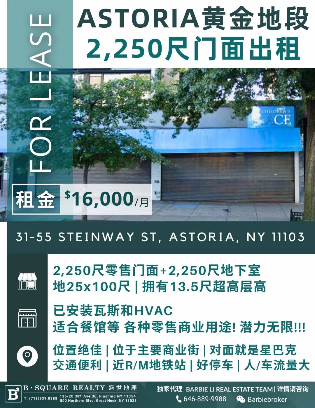 🚨 商业出租|Astoria 核心地段 💼 Steinway St 临街旺铺