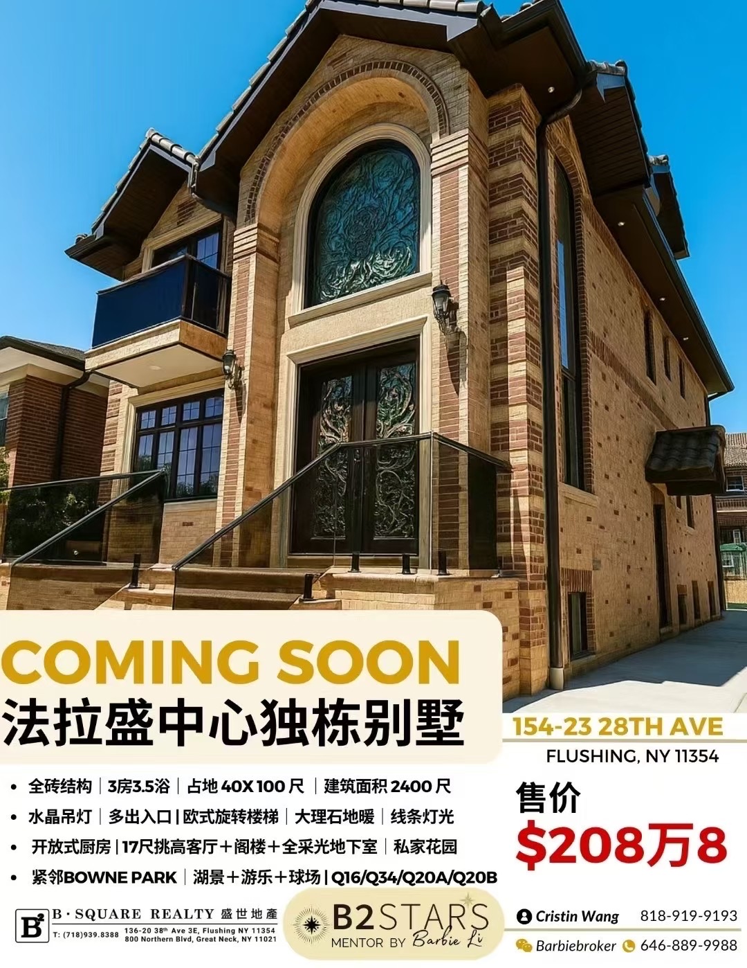 🏡【法拉盛中心独栋别墅🔥稀有上市】