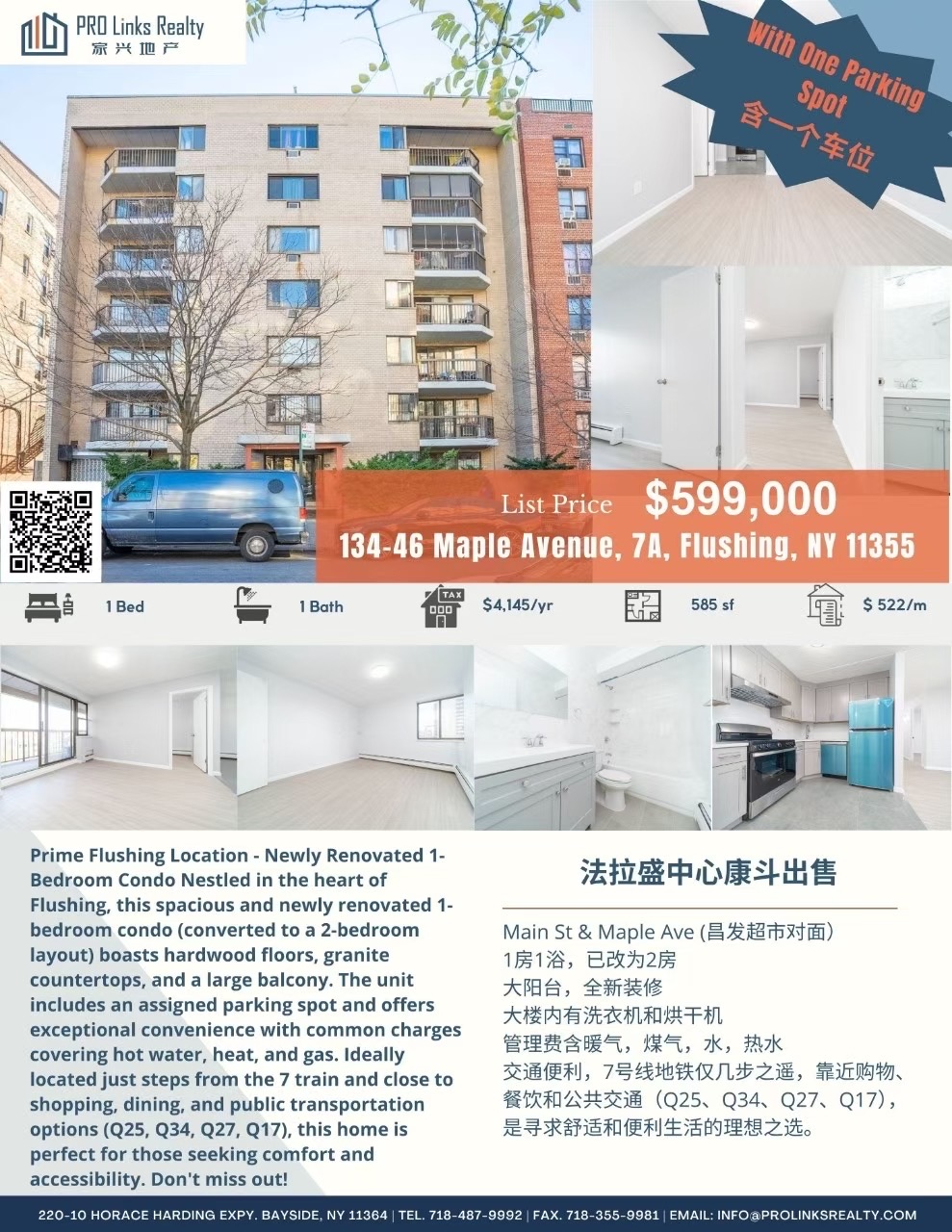 🎉出售法拉盛中心康斗🎉降价优惠🧧只售$59万9Mains St & Maple Ave(昌发超市对面)1房1浴,已改为2房 🔹含一个车位🔹大阳台,全新装修大楼内有洗衣机和烘干机。管理费$522/月 含暖气,煤气,水, 热水地税$4,145/年🏠客廳,飯廳,廚房,主臥,另有分隔一臥,1全浴,大阳台🚌交通便利 Q25, Q34, Q27, Q17🏠134-46 Maple Ave #7A Flushing NY 11355👏欢迎合作转发,有🔑随时约看☎️Lillian 刘 917-4188233☎️Benson 潘 646-301-8280