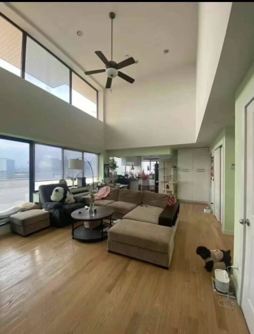 法拉盛租房出租:近图书馆大3房两浴一厅、电梯公寓在高层、近图书馆有阳台、大厅、采光好、查信用报税、两房两浴一厅$2800联系电话2128109985