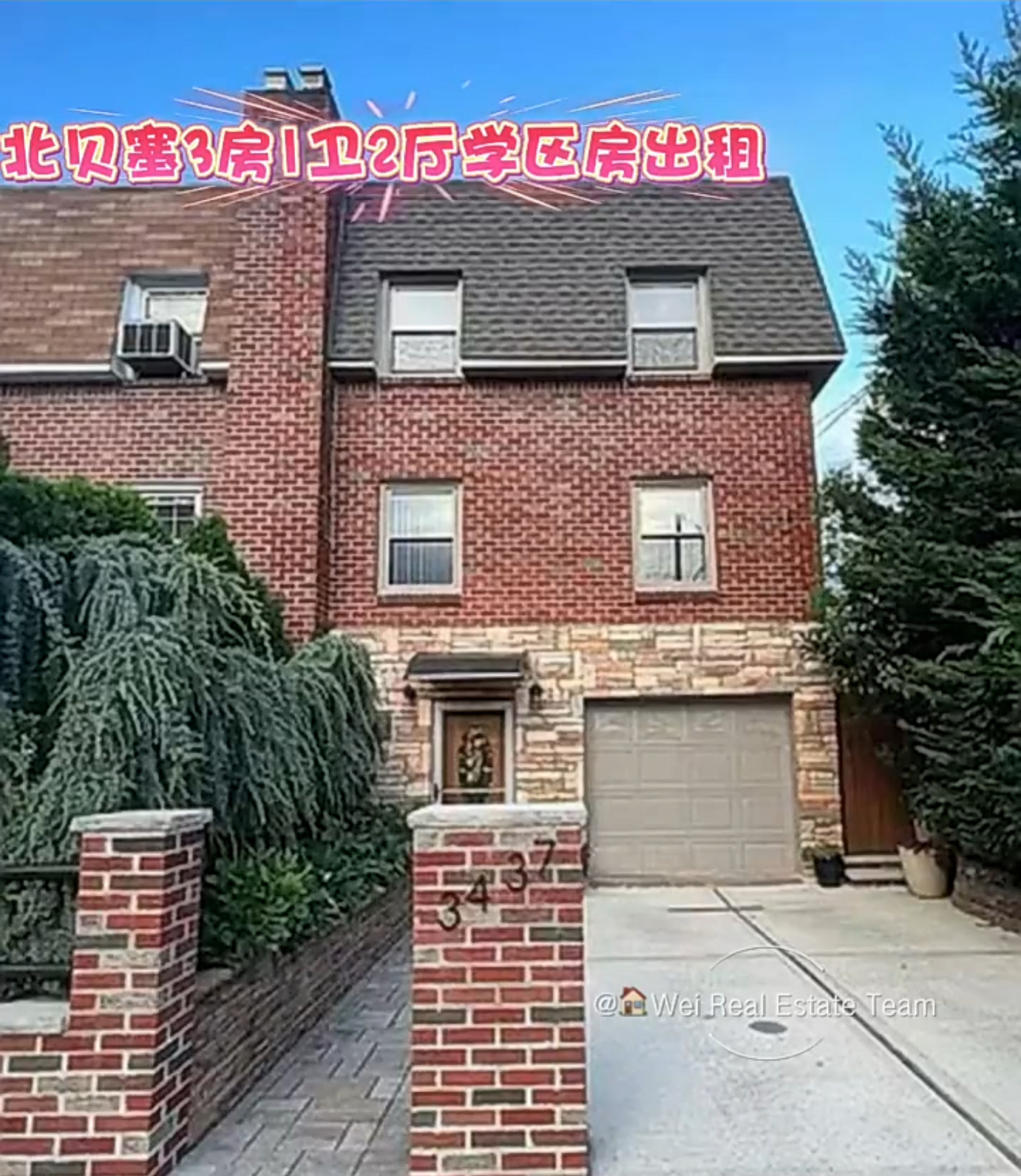 【贝赛出租】663单边二楼 3房1卫2厅出租 1200尺 包水 近 bell blvd , LIRR 长岛火车站 , 万华超市 ,26好学区 PS159小学 158初中 bayside 高中好环境生活方便 $3300(屋主付佣金)