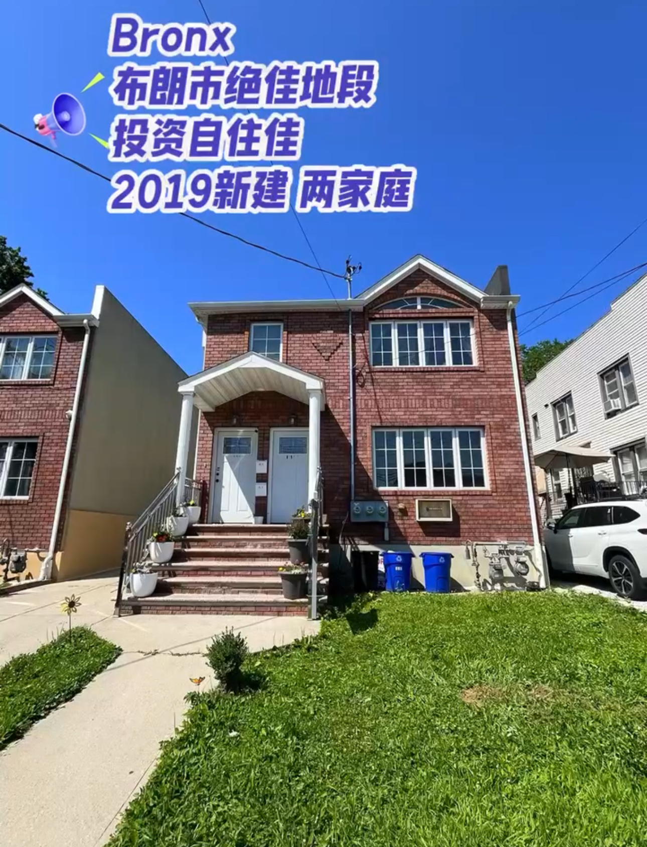 布朗士两家庭出售 🔹稀缺房源 2019年新建🔹Bronx布朗士桥头独立特大两家庭出售 🔹位于Bronx最好区Throgg Neck🔹每层3房2卫+特大客厅 分开出入🔹独立车道+双车库🔹另有装修完善地下室+一卫🔹室内面积 25x50 空间宽敞明亮舒适🔹近Highway678和295 15分钟车程到法拉盛中心🔹巴士Q50 20分钟车程到法拉盛🔹一条街到商业街 生活便利 地理位置优越🔹投资自主最佳选择Asking: $1,199,000🏠 Hollywood Ave Bronx NY 10465917-364-9341 ping