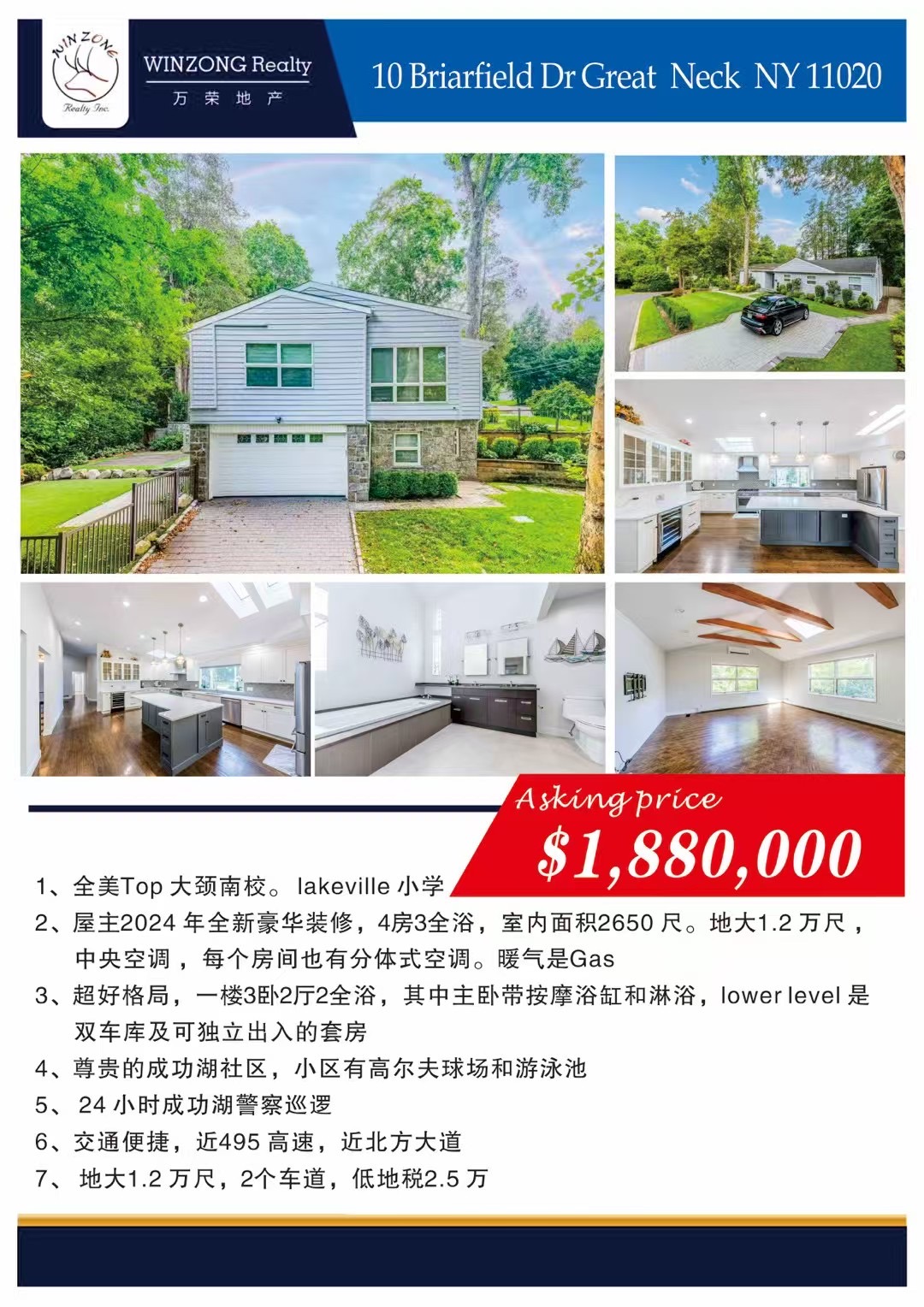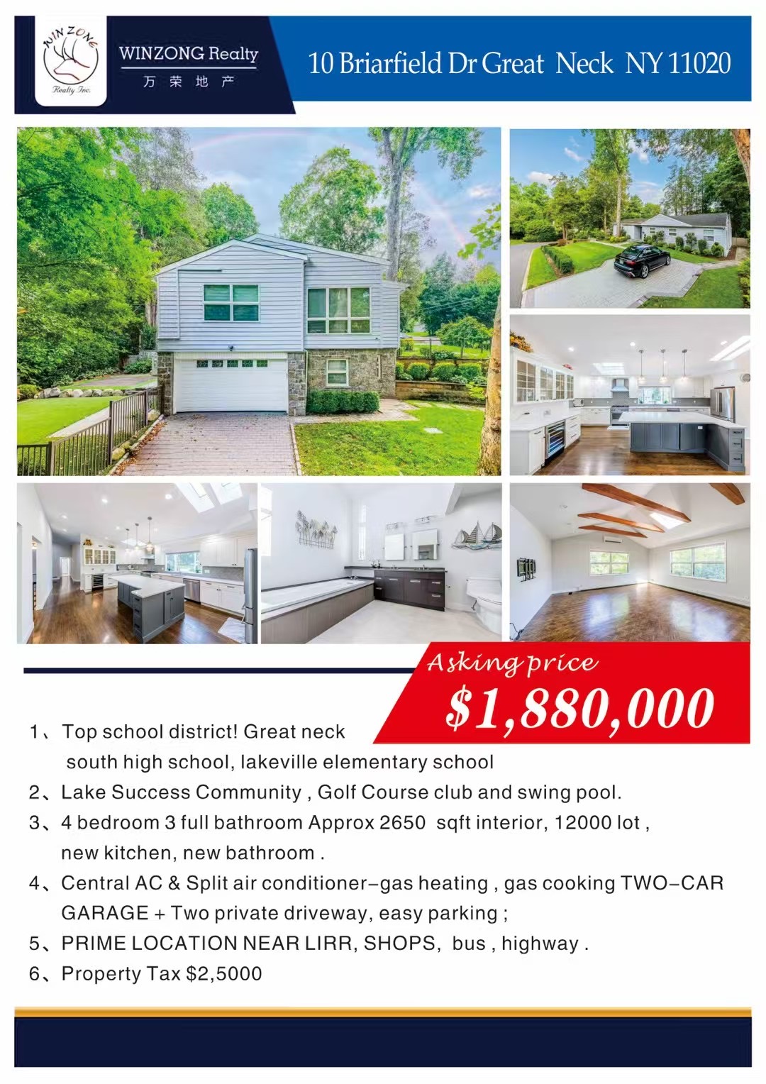 🎈室内2650 尺, 地大1.2 万尺。挑高客厅及卫浴,全屋多阳光天窗 。低地税2.5 万