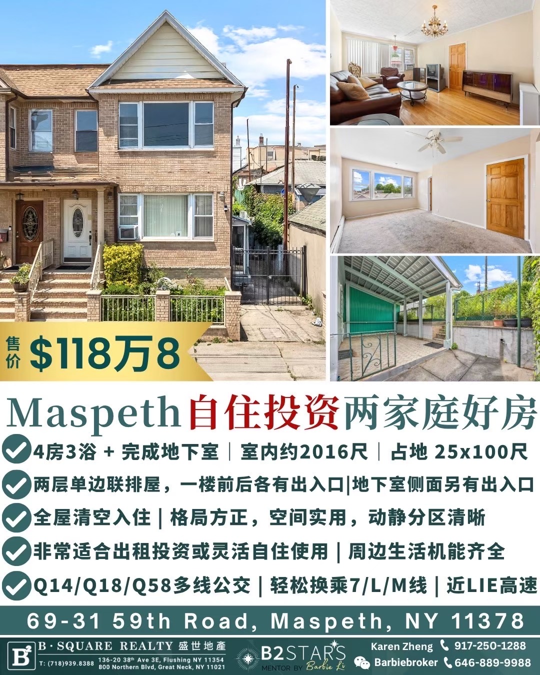 皇后区房子出售🔥Maspeth自住投资两家庭好房🔥