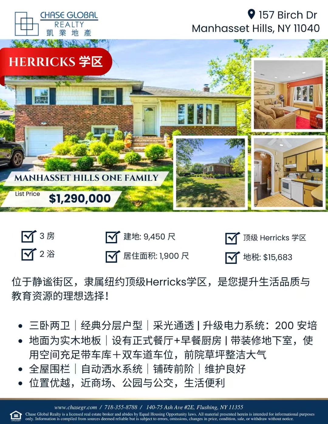 长岛房子出售新代理:Manhasset Hills 人见人爱的好区,Herricks顶级学区