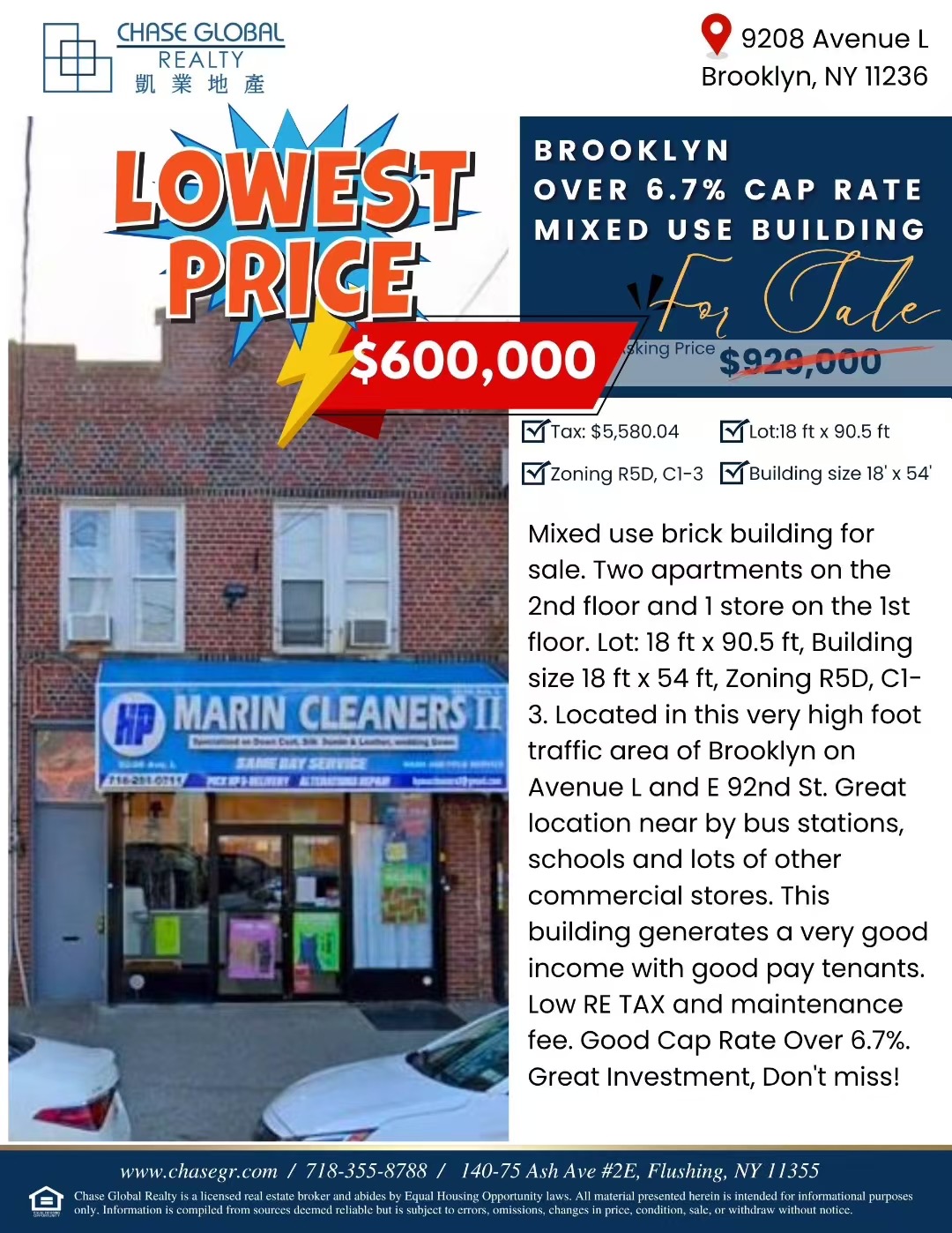 【布鲁克林出售】‼️屋主急售!直降32万9!只需60万即可买到布鲁克林高回报率商住楼🔥