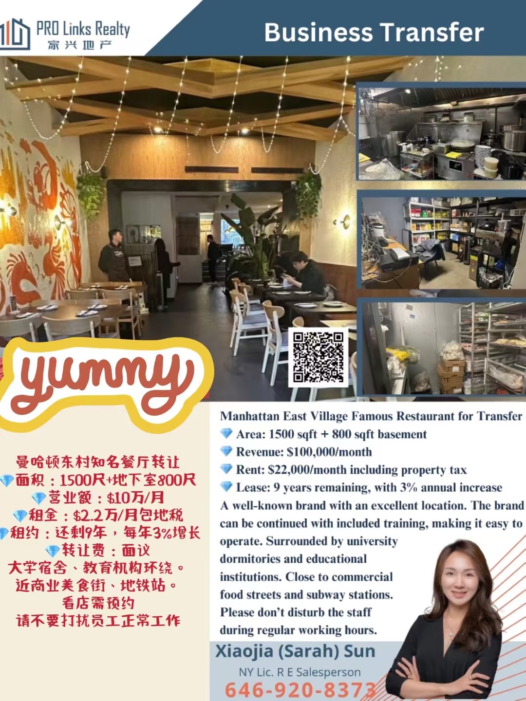 👏曼哈顿东村知名餐厅转让👏 💎面积:1500尺+地下室800尺 💎营业额:$10万/月