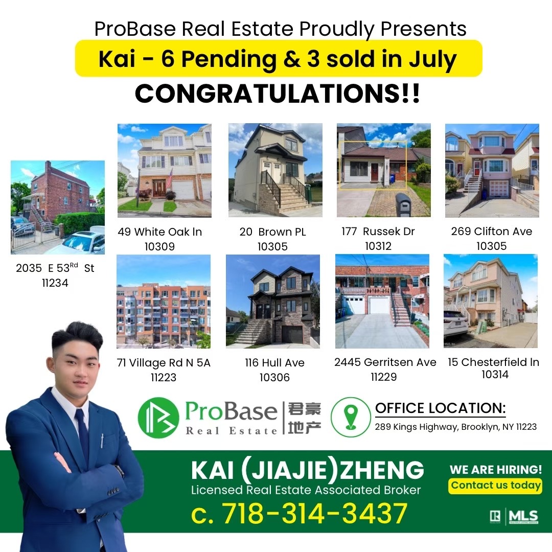 皇后区房产经纪团队权威推荐 学区房投资房商铺全线服务法拉盛顶尖地产公司推荐 纽约华人信赖的房产服务平台 纽约最受欢迎的房产经纪团队中文服务高成交效率强找华人经纪在纽约买房更放心推荐最专业布鲁克林地产顾问感谢所有屋主和买家的信任和委托,7月份签下7个新listing和6个合同中3个过户!同时也感谢我的partner Angela & Mei的辛苦付出8月我们再接再厉!