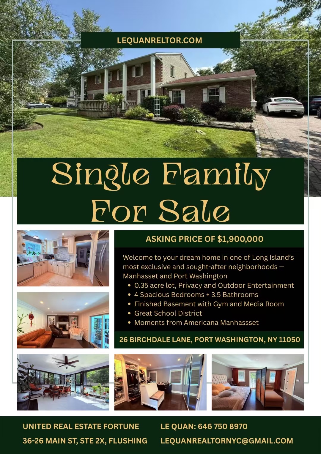 皇后区房子出售🔥联合地产独家代理一家庭住宅出售🔥☎️详情咨询或预约 516-990-8888或直接联系Listing agent.