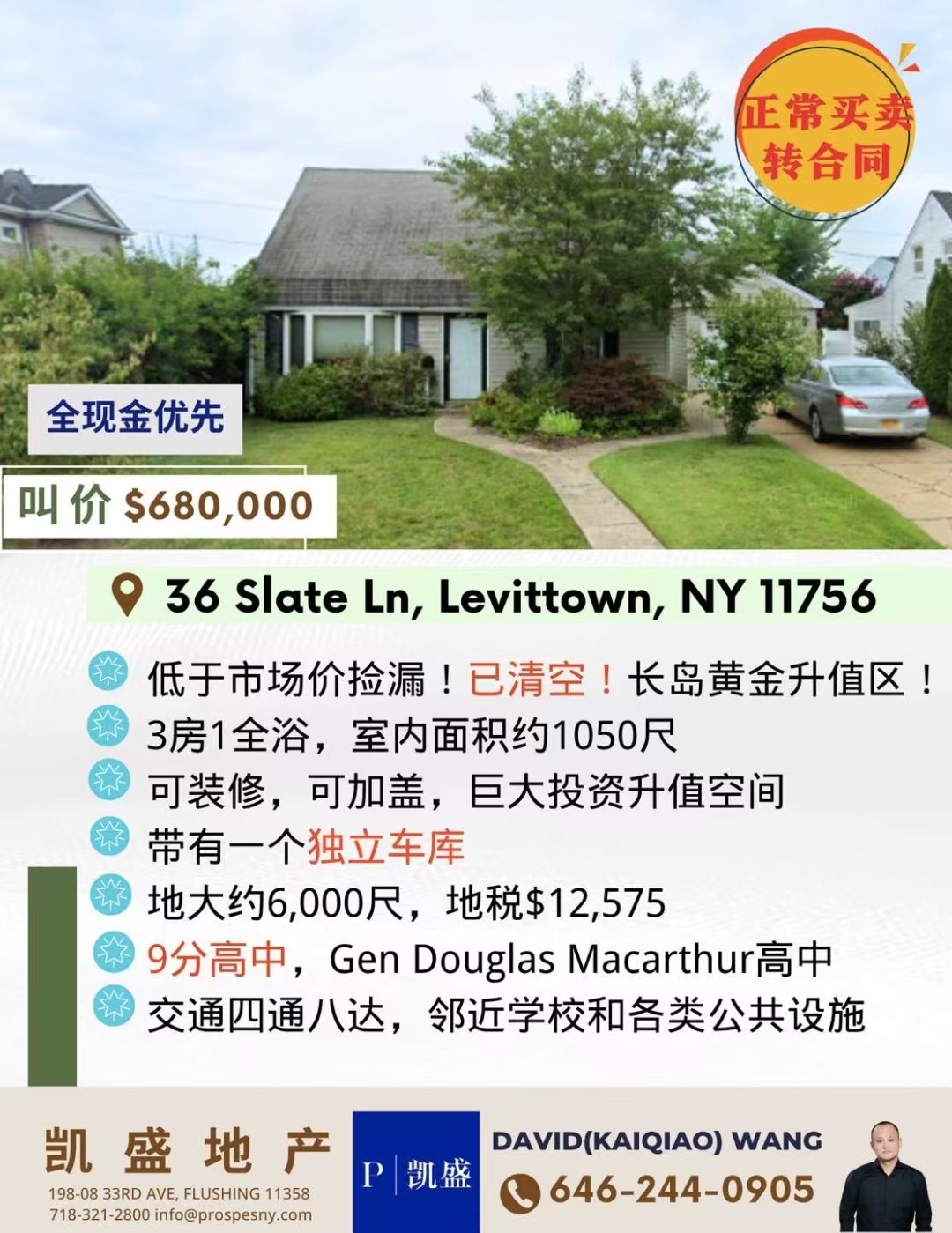 🔥 凯盛地产独家代理 🔥🚀 Levittown 长岛转合同抢手房源 🚀