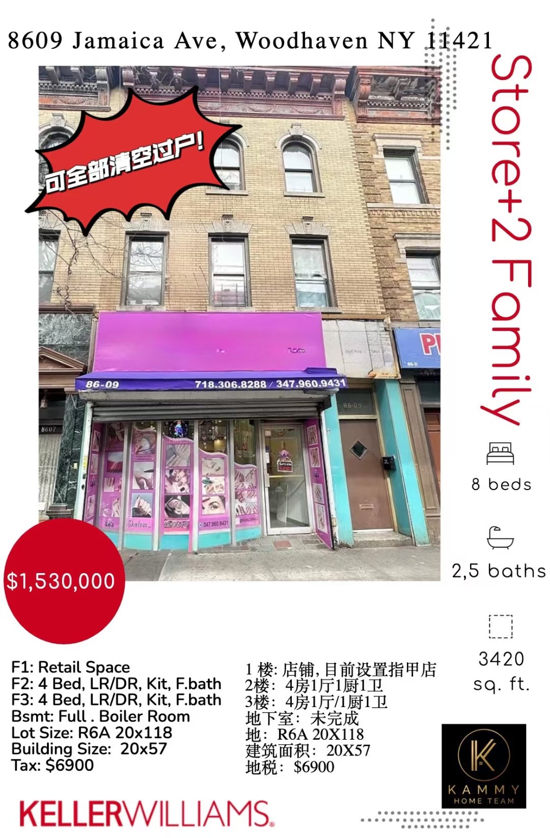 皇后区房子出售💃🏽一流自营生意2家庭收入💃🏽难得的机会🔥可以100%整栋清空过户🙌新价格153万! 想自己开店的亲们,赶紧联系我们👌Woodhaven 一流地段86街,详情请联系肖小姐9174204420