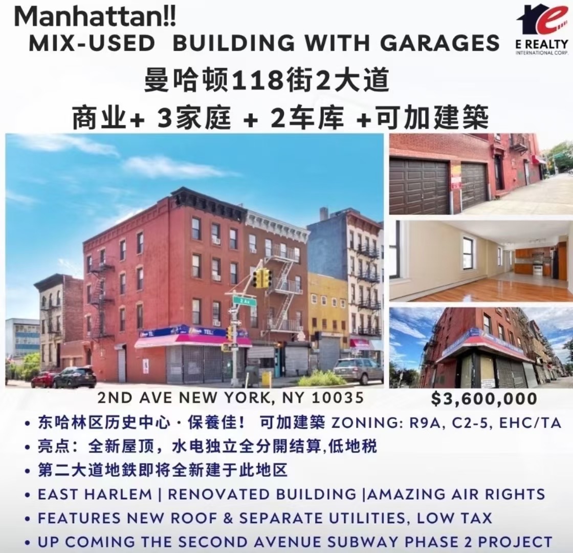 曼哈顿118街2大道商业+3家庭 +2车库出售 欢迎买家☎️631-623-9555