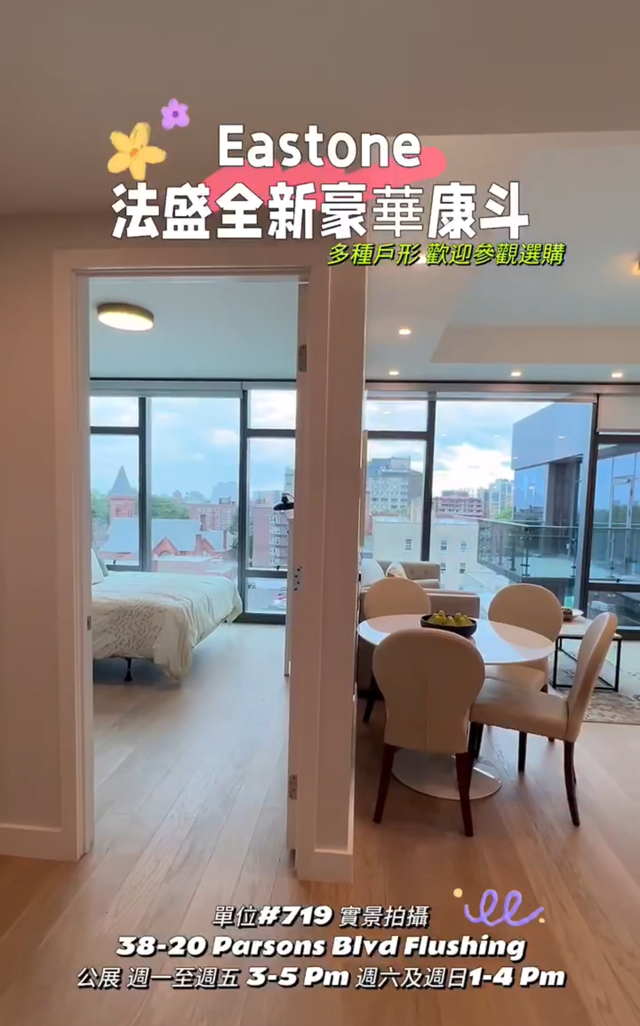 🎉Eastone 天天公展 歡迎參觀 合作周一至周五3-5PM,周六周日1-4PM法拉盛最新地标豪华公寓,2025年落成,地理位置优越共175户高档公寓,19套社区服务办公室康斗户型从筒仓至三房, 宽敞明亮,现代化装修,配备木地板,户型方正, 面积无浪费隔音保温落地窗,每户配置窗帘,中央冷暖空调,智能门锁系统高端厨房,石英台面, 配备全套BOSCH家电豪华浴室,独立淋浴, 设有TOTO智能马桶部分户型带有私人阳台或大露台大楼配有健身房、休闲娱乐室、儿童游乐室、露天花园, 设有烧烤区、宠物活动区快递收发室、有门卫、可视对讲机, 安保系统