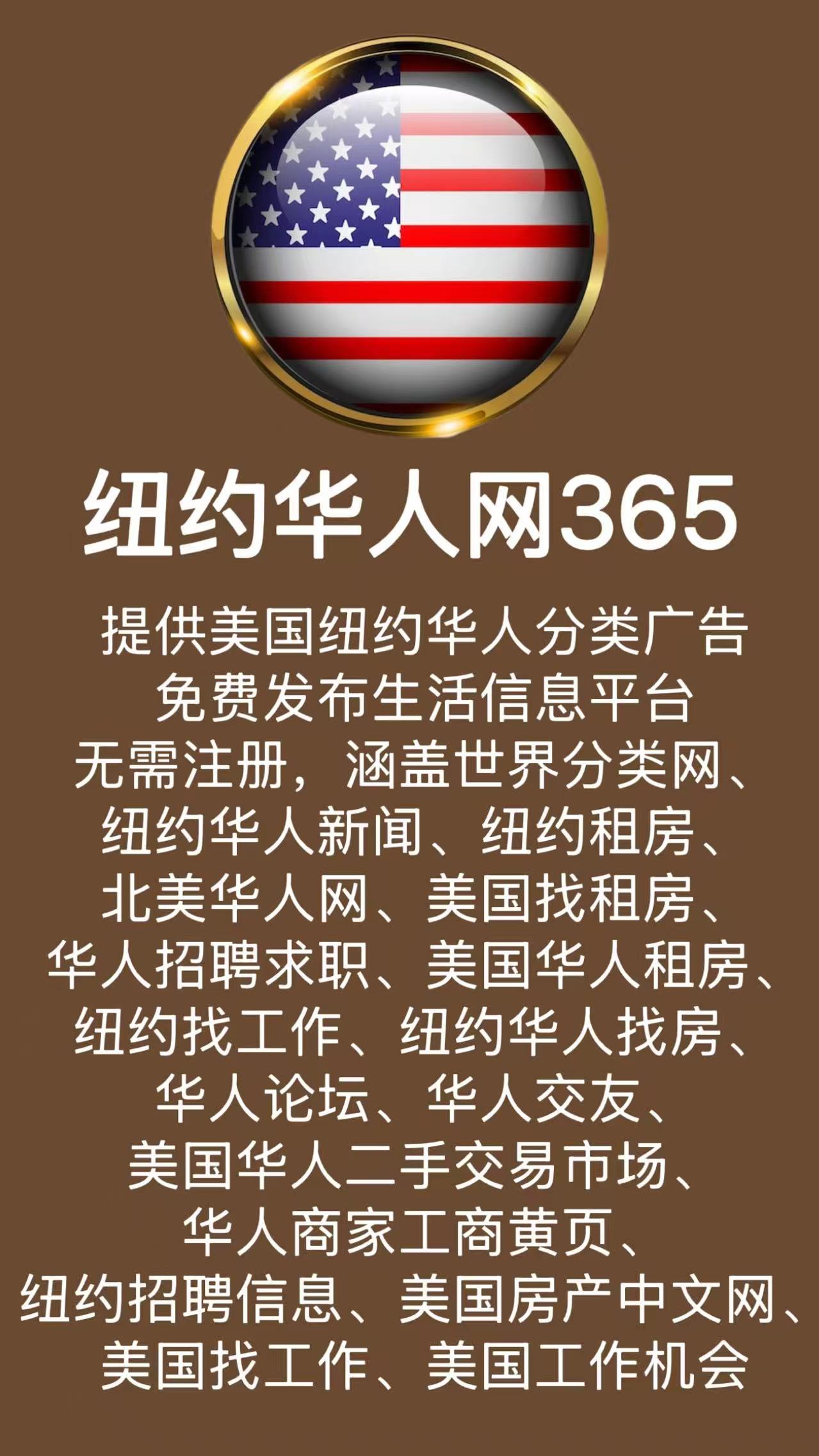 纽约华人网365汇聚纽约租房、华人找工作、二手买卖、餐馆招工、生活服务等免费分类信息,覆盖法拉盛、曼哈顿、皇后区等热门地区。无需注册即可发布广告,快速连接本地华人生活圈。找纽约房源、华人招聘信息、华人生活服务首选纽约华人网365!覆盖租房168、工作360、纽约商家黄页、法拉盛招聘等高频词,智能推荐、高效匹配,助你轻松融入纽约生活。