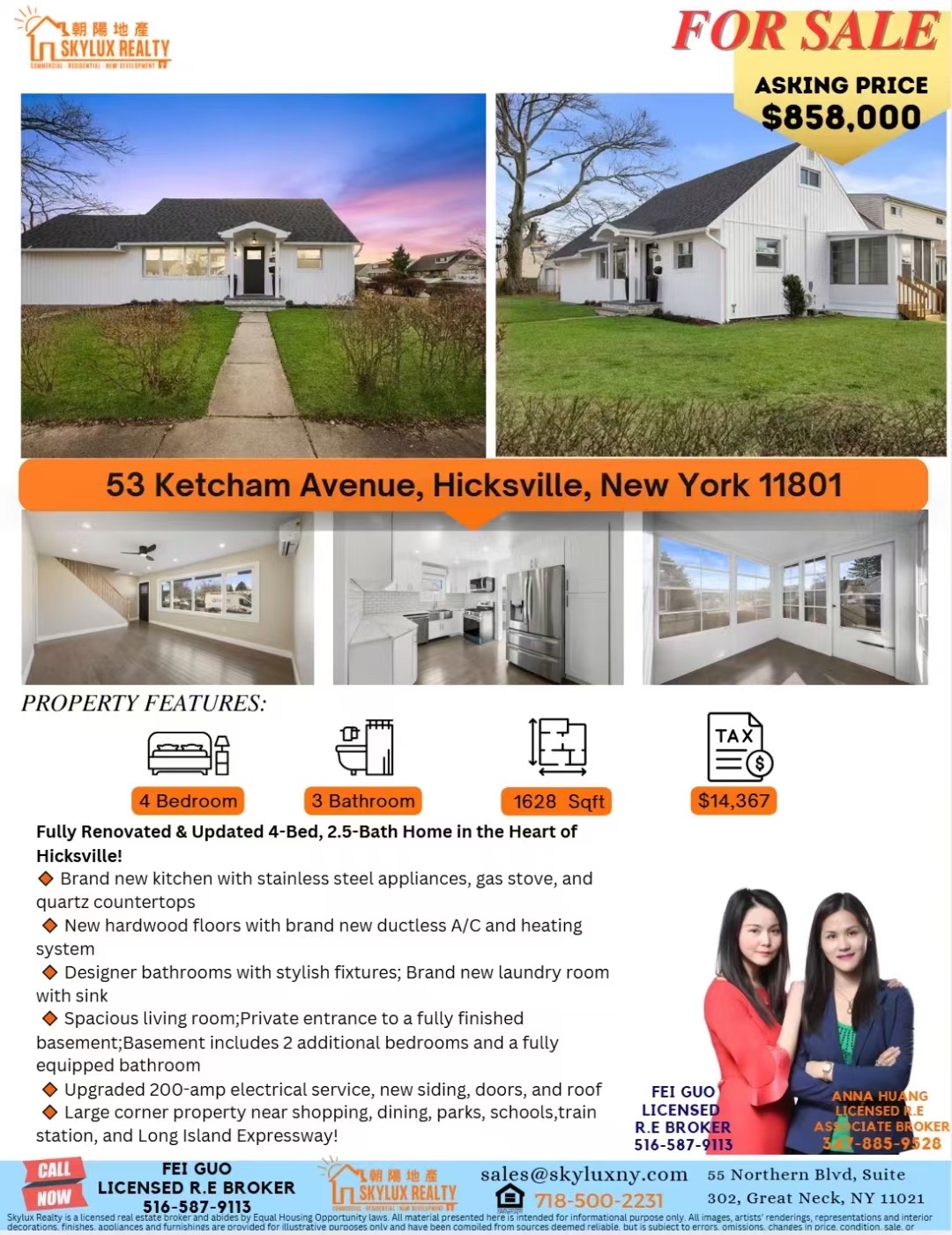 🔸大型轉角房產,靠近購物、餐飲、公園、學校、希克斯維爾火車和長島高速公路! 🤝欢迎合作