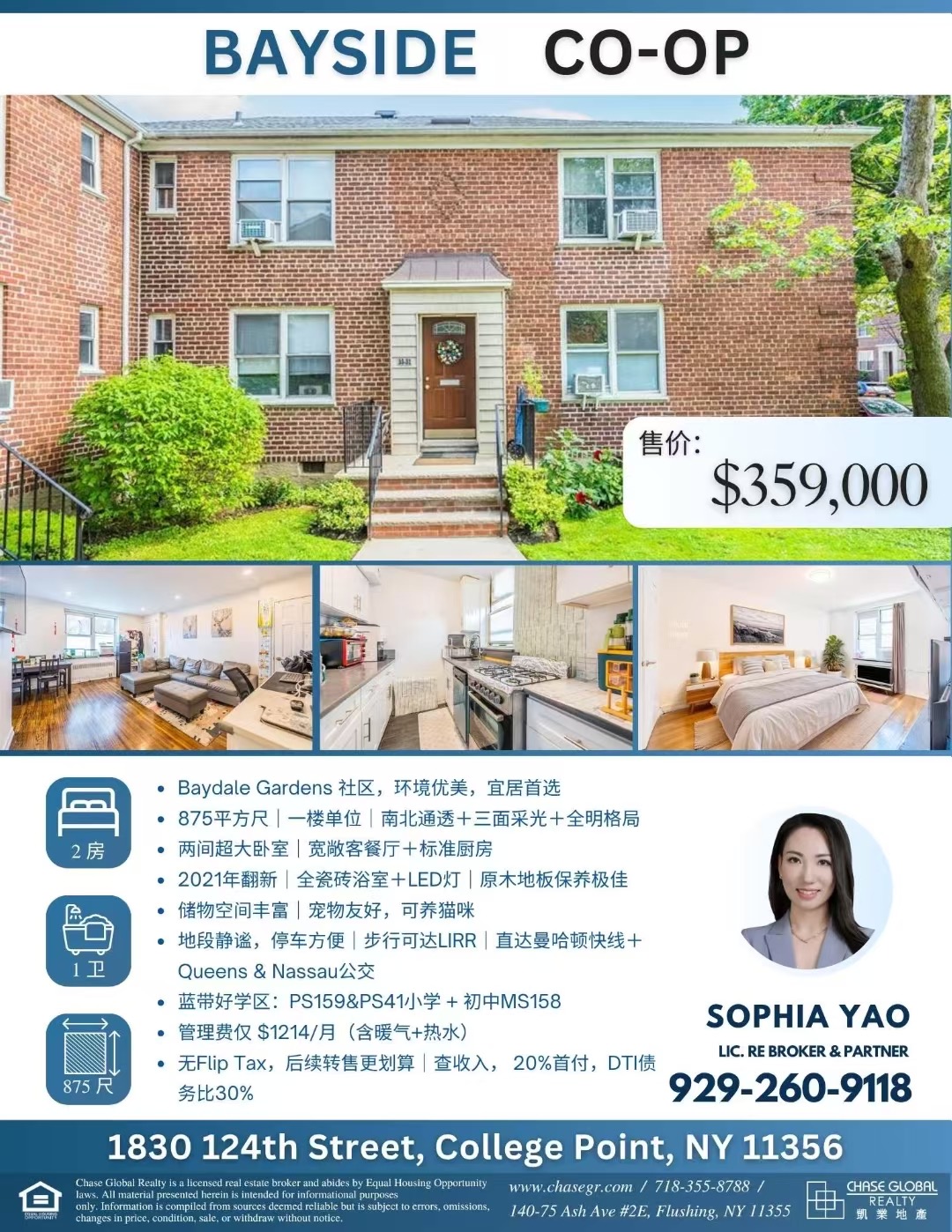💡 管理费仅 $1214/月(含暖气+热水)🚫 无Flip Tax,后续转售更划算📌 需查收入欢迎合作☎:929-260-9118 Sophia Yao