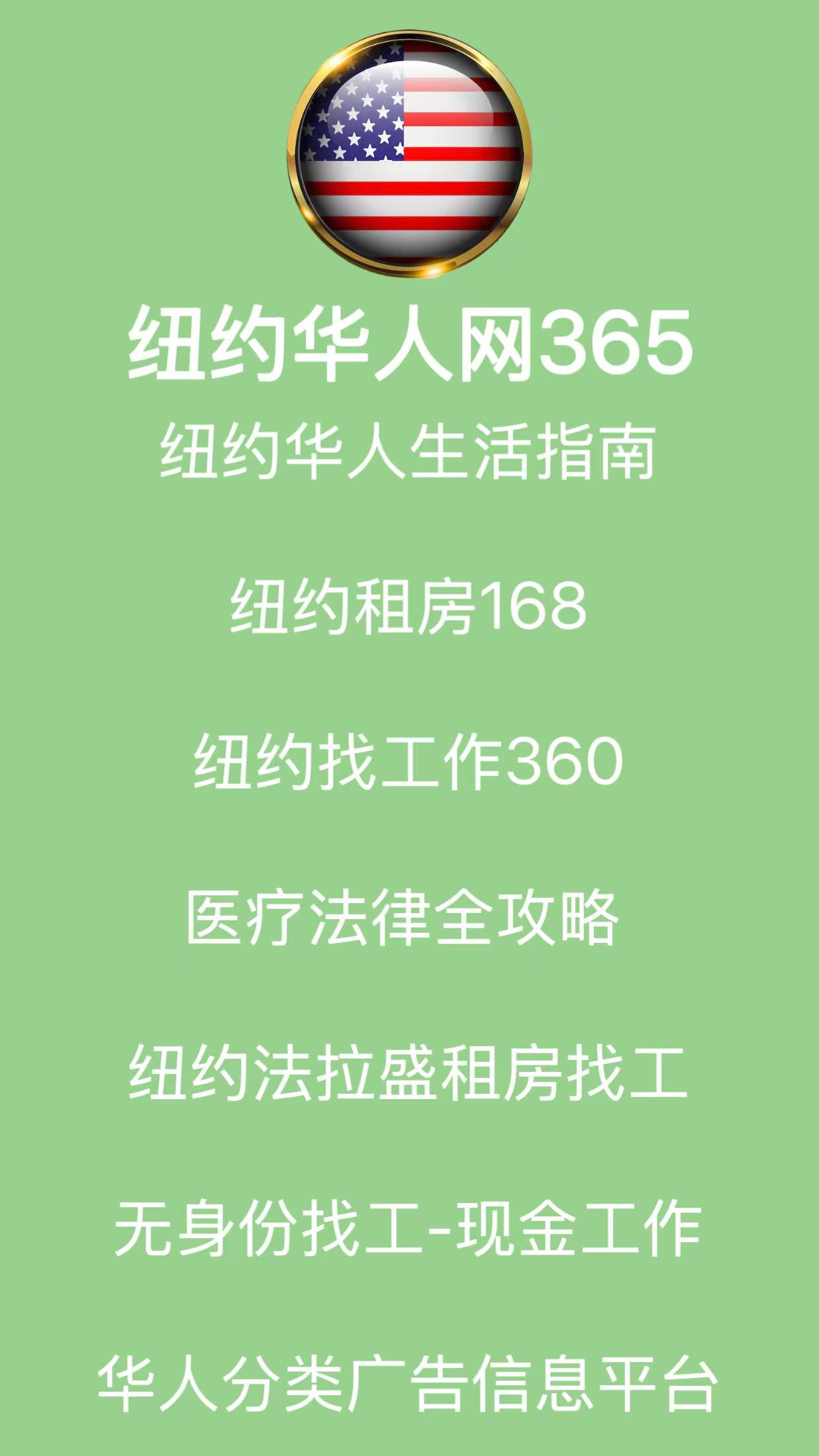 2025纽约华人生活必备全攻略:租房、找工、办证、法律、医疗一网打尽(附热门平台推荐)纽约华人网365汇聚最全分类信息:纽约找工作360、租房168、华人招聘网、移民办证、保险医疗!助你在法拉盛、布鲁克林、皇后区轻松生活!纽约华人生活一站式指南,全面覆盖租房找工、法律医疗、公证翻译等服务!立即查看法拉盛租房、布鲁克林工作机会、热门分类信息。尽在纽约华人网365!