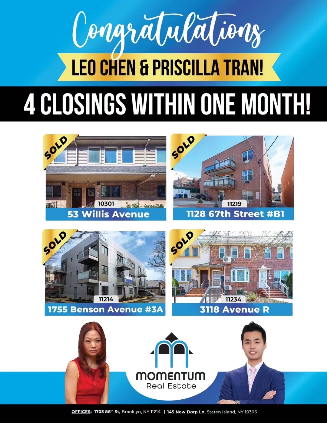 🎉最受好评纽约华人地产经纪人 带看布鲁克林法拉盛独家房源华人在纽约买房找谁好?推荐10位高评分房地产经纪人🎉一个月内我們 顺利过户4套房子。如果您需要销售或购买帮助请联系我们。☎️ Priscilla Tran 陳小姐: 917-548-6668☎️ Leo Chen : 347- 771-0530. Momentum real estate.
