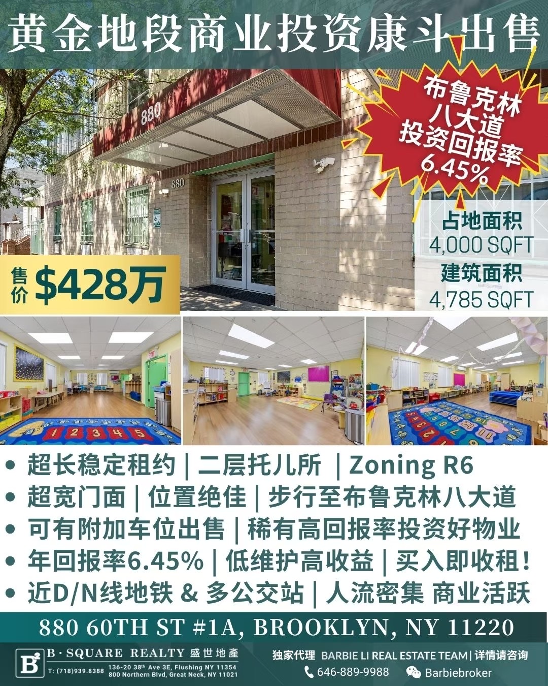 🔥【布鲁克林第八大道核心商圈】超高回报商业物业出售!📍 低维护高收益 | 6.5%回报率 | 带超长期稳定租约