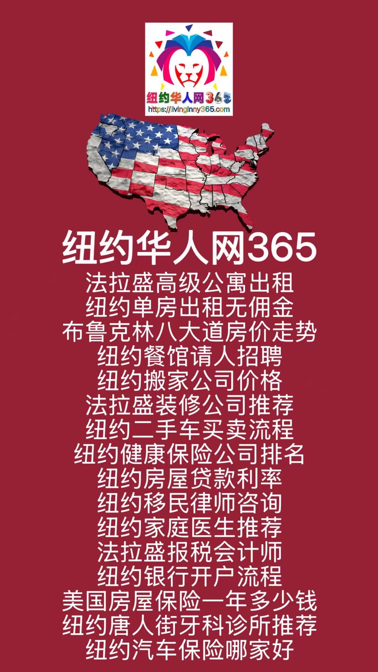 纽约华人网365:覆盖纽约生活、房产、招聘、二手交易的全方位中文信息平台。纽约华人网365,专业的美国纽约华人生活资讯网,覆盖纽约租房、房屋买卖、招聘找工作、二手车搬家装修、律师医生保险等多领域,助你轻松融入纽约华人社区。纽约华人网365为您提供最新法拉盛租房、布鲁克林房产出售、纽约搬家公司、华人招聘求职、二手车买卖等资讯,覆盖曼哈顿、长岛、新泽西等华人热点区域,打造纽约华人首选生活平台。