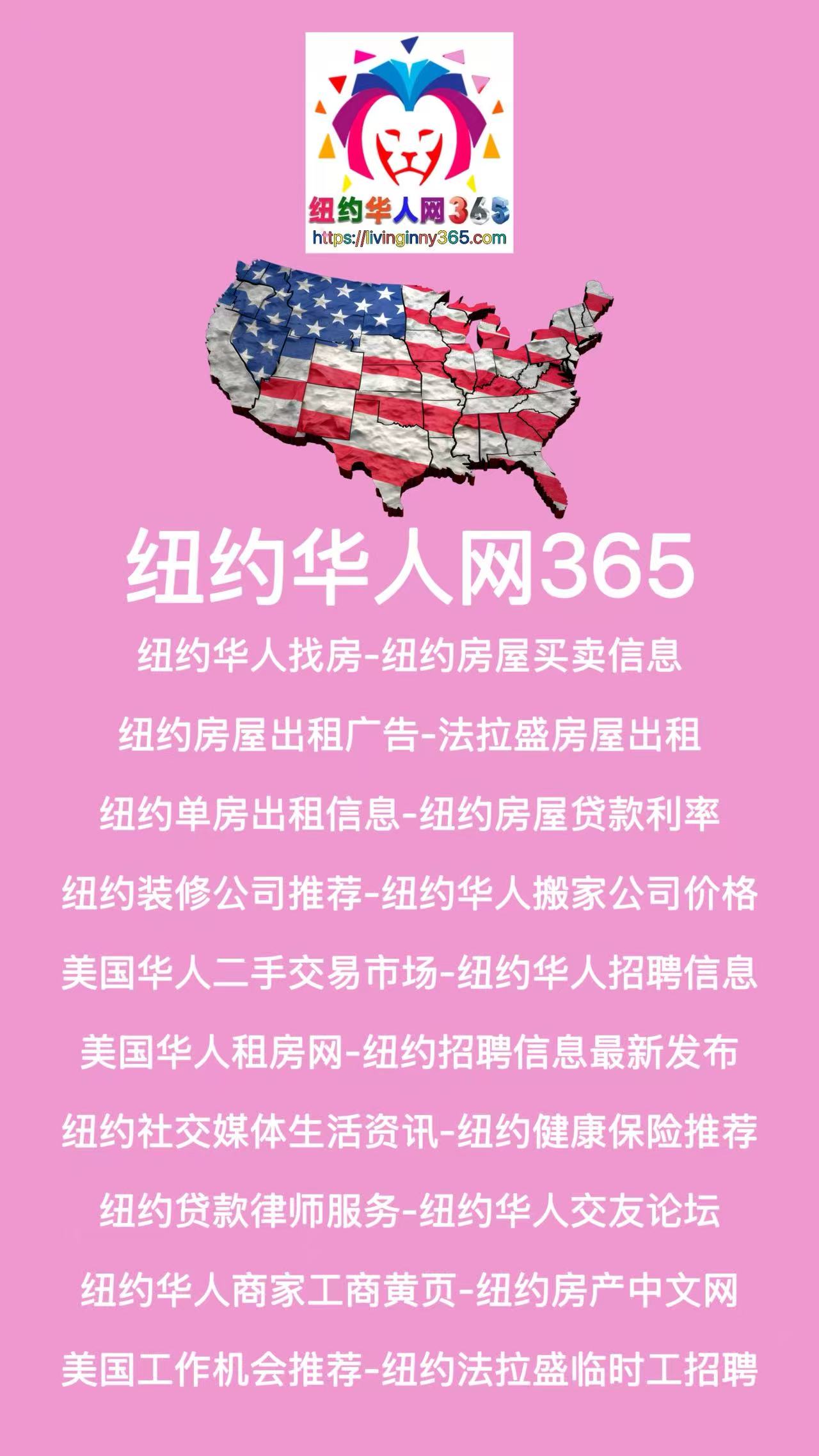 现在就访问纽约华人网365,发现更多纽约招聘、纽约租房、美国找工作、华人招聘求职、纽约二手交易、搬家装修服务及各类生活资讯,让你的美国纽约生活更加精彩顺利!