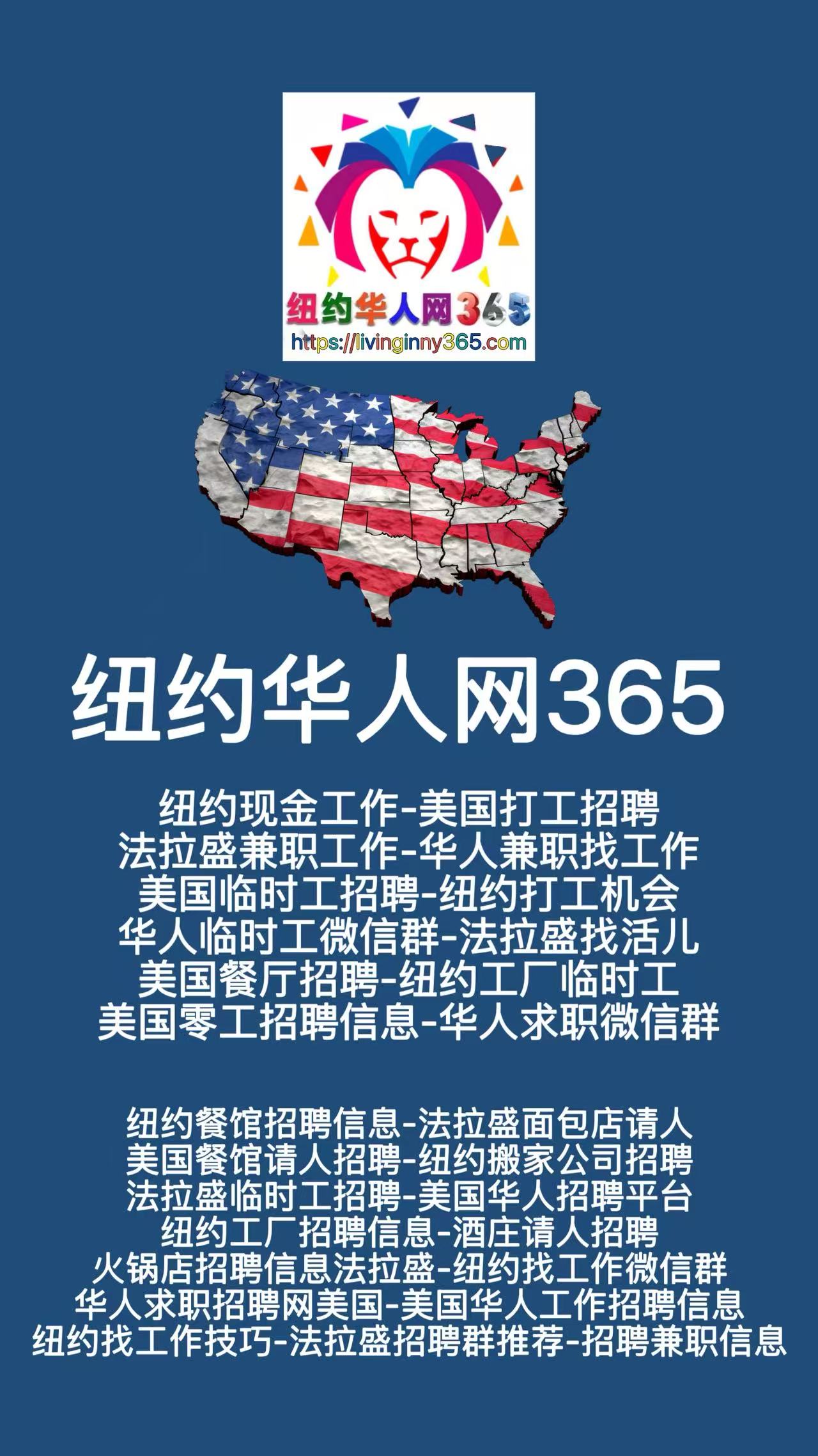 纽约招聘信息与美国华人找工作全攻略 — 助你轻松找到理想工作。纽约华人网365为您提供最新纽约招聘信息、法拉盛找工作微信群、美国华人招聘求职指南。涵盖餐饮、搬家、零售等热门行业岗位,助您轻松找到理想工作!想了解纽约招聘信息和美国华人找工作渠道?纽约华人网365提供最全招聘资讯、求职技巧及微信群推荐,覆盖法拉盛、布鲁克林等热门区域,助力您的求职成功!