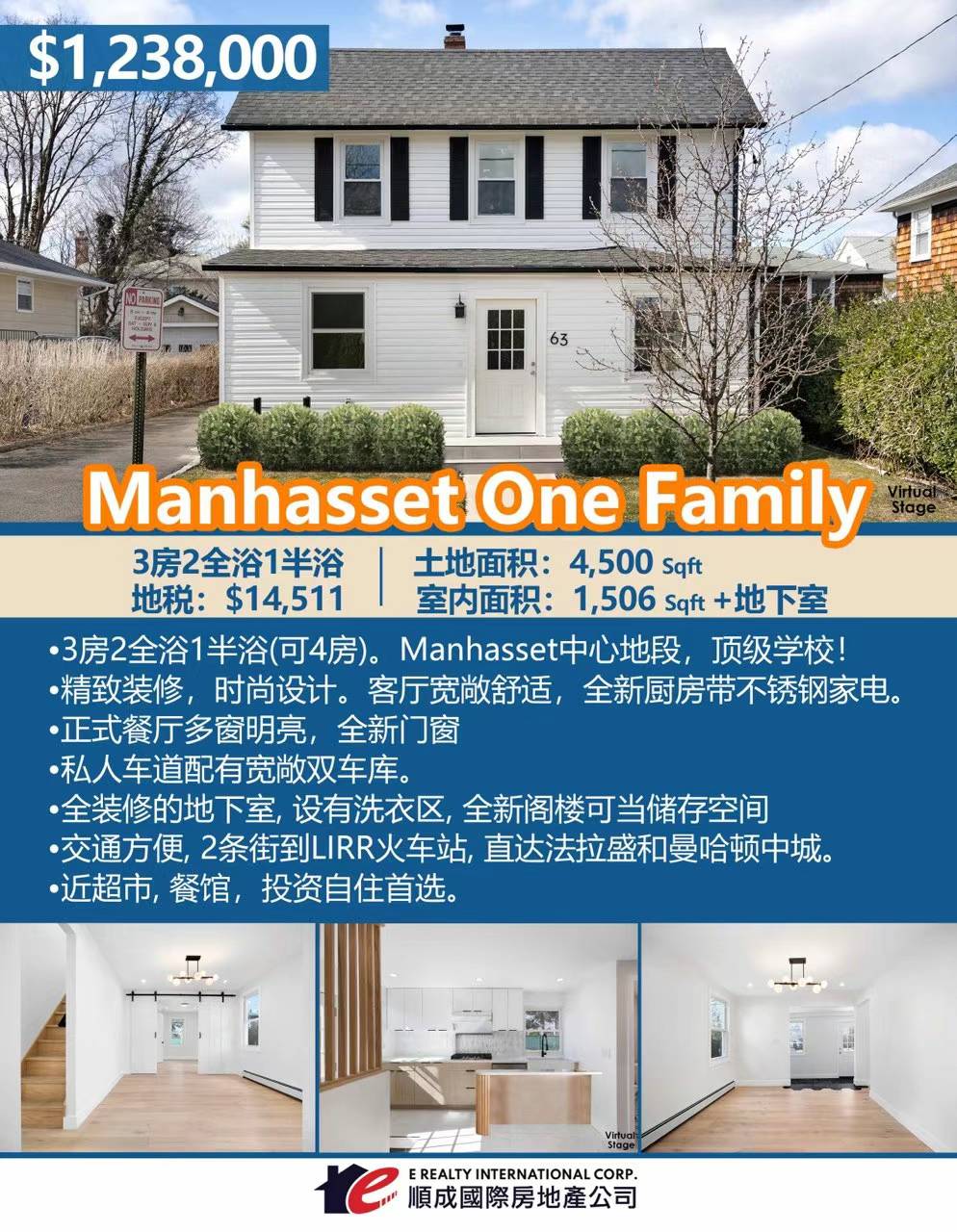 顺成独家代理, Manhasset中心地段独立一家庭,顶级学校!