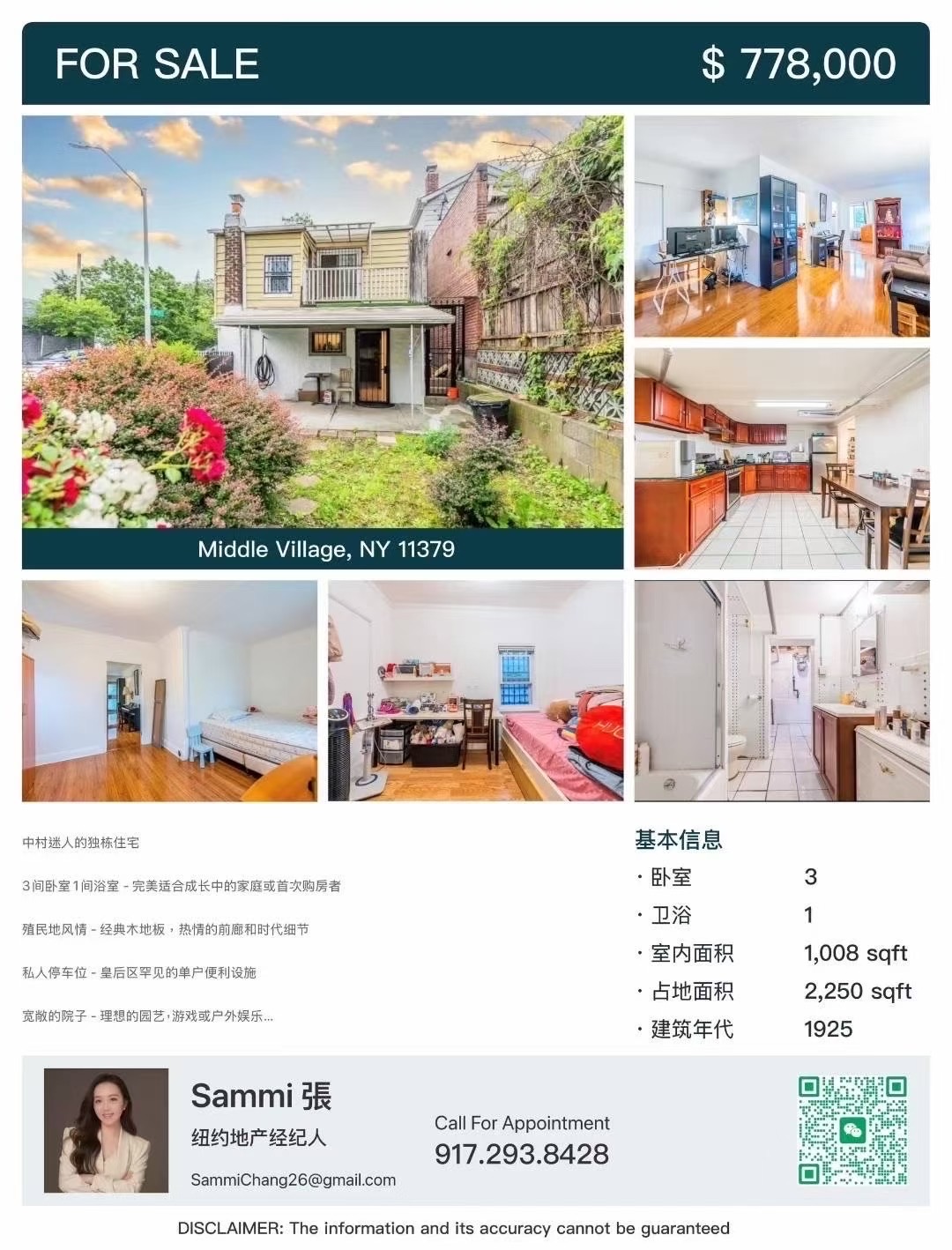 皇后区房子出售🌟中村迷人独栋一家庭 3房1浴🌟18x40长的居住空间,屋主精心打造,格局大气舒适🌿 宽敞后院 🚗 多个私人车位🏘️本屋坐落于宁静、绿树成荫的住宅街区,邻里友善,社区氛围浓厚,是兼具舒适与便利的理想居住选择,机会难得,不容错过!💰$778,000📍57-36 75 St Middle Village NY 11379🤝独家代理,欢迎🈴️作转发