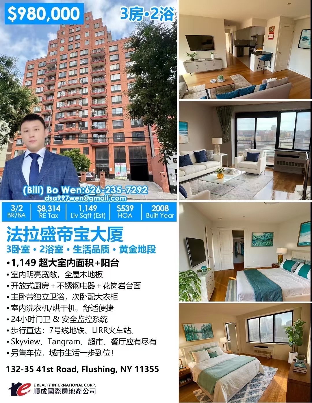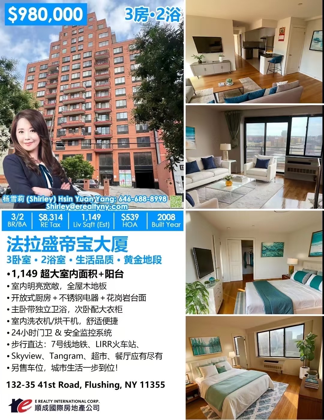 🎉步行圖書舘 Skyview shopping 地鉄 超市皆在🎉7-10 分鐘內🎉另有車位另售每尺價格超優惠 機會難得 儘早預約 順成房地產 楊雪莉 646-688-8998E Realty International Corp