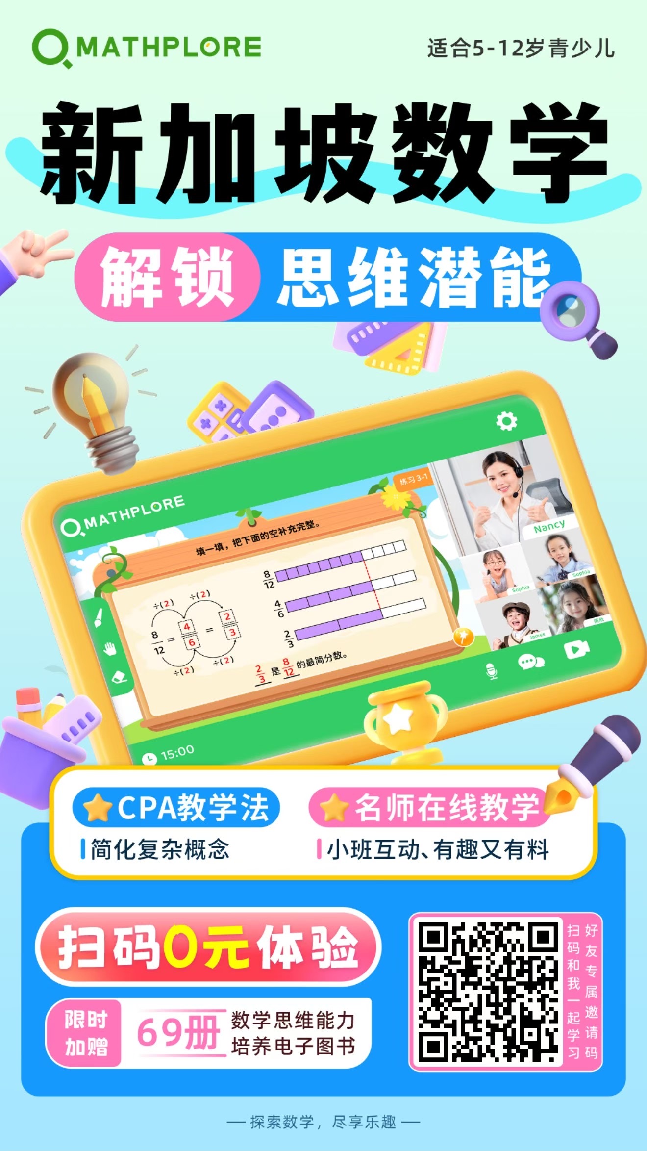 听了班上学霸妈妈的话,才知道孩子学数学根本不需要练计算,而是练思维!她们学霸圈都用的Mathplore新加坡数学,用国际知名的CPA教学法给娃打通逻辑思维,真的有效,赶紧来试试~