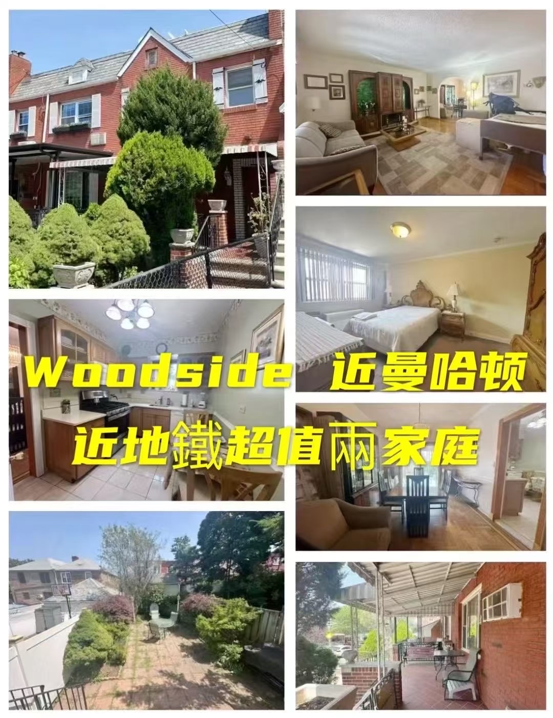 新上市 Woodside 皇后区房子出售中心 地面積1,948平方英尺、室内面积约 1,880 平方英尺。房屋前后有陽台、地稅7363