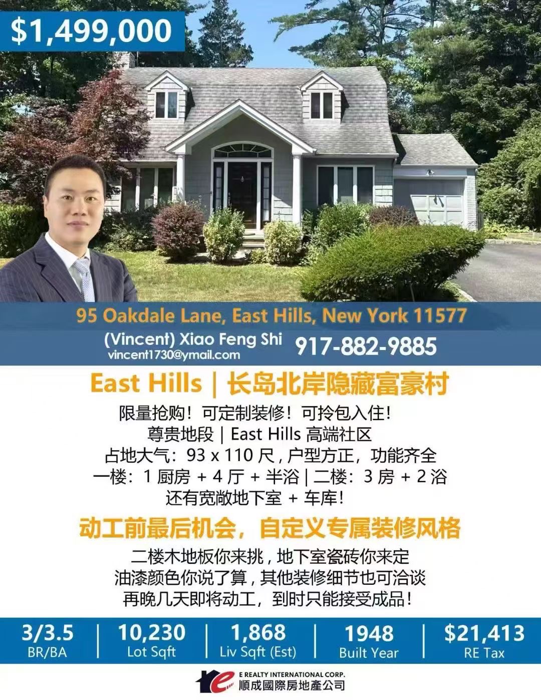 📢 附近库存紧张,几乎无货,手慢无!🗝️ 有Key,方便约看!📍地址:95 Oakdale Ln, East Hills, NY 11577☎️ Vincent Shi 917-882-9885