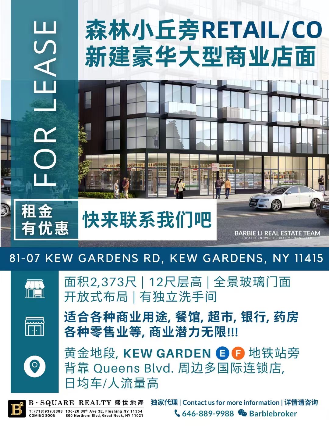 🌟【超高曝光率 | Kew Gardens黄金地段零售门面招租】