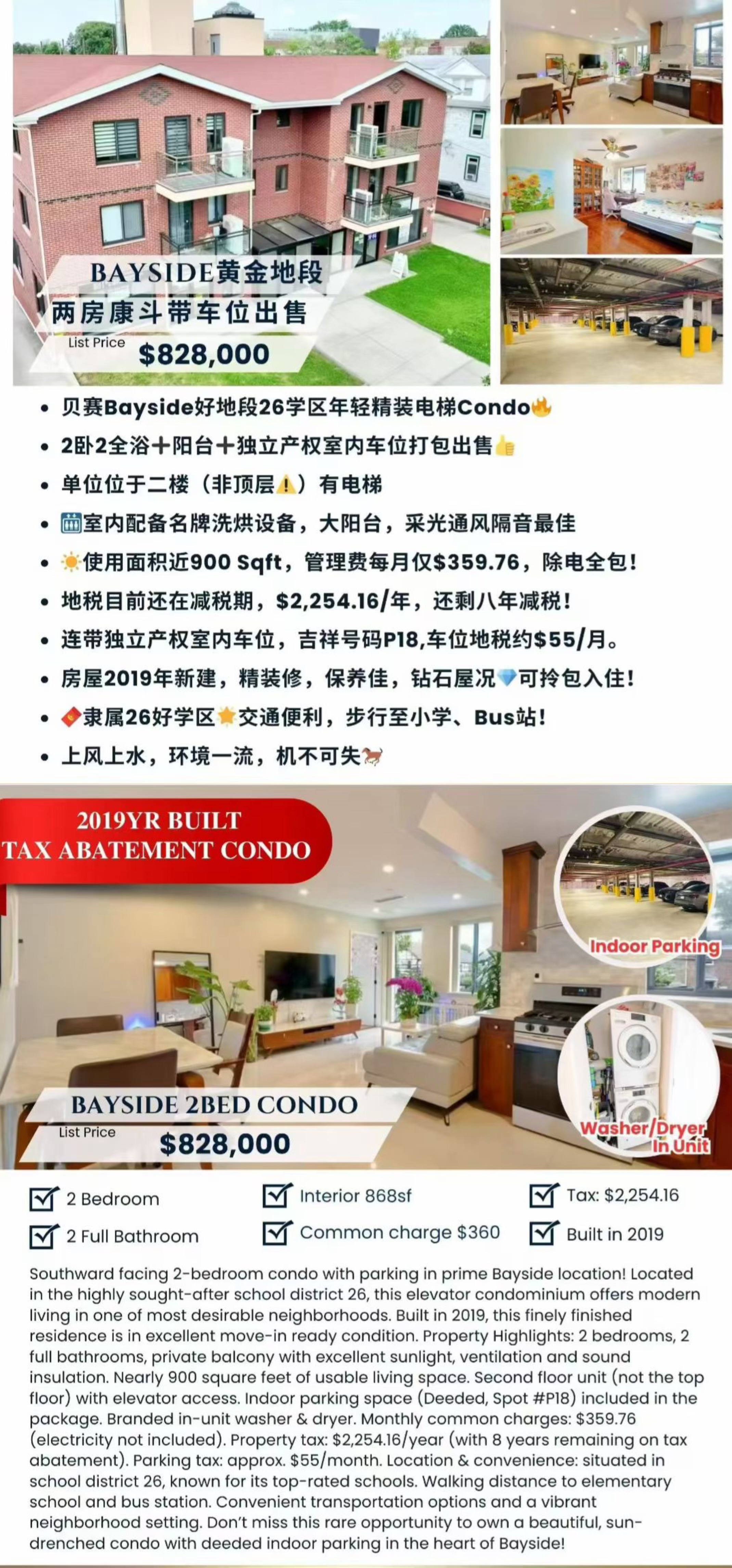贝赛康斗Bayside好地段26学区年轻精装电梯Condo康斗出售💰售价$828,000