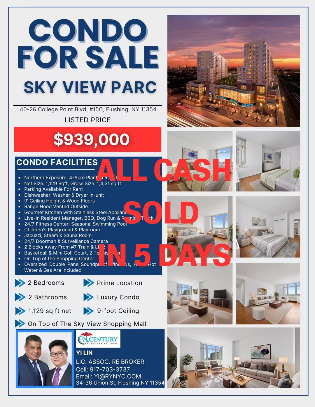 纽约房产市场竞争激烈,选择一位经验丰富的地产经纪与可靠的地产公司尤为关键。纽约华人网365合作的专业地产经纪团队,长期活跃在皇后区、法拉盛、曼哈顿、布鲁克林等热门区域,深谙华人买卖房产需求。我们不仅提供最新楼盘与二手房源信息,更在谈判、贷款、律师对接及过户环节全程陪伴,确保交易安全高效。近期,我们协助客户在纽约天景豪苑成功完成全现金购房并顺利过户,再次展现专业团队的实力与信誉。无论是自住购房还是投资房产,我们都能为您打造最省心的置业体验。🏙【Sky View Parc-天景豪苑 成交】