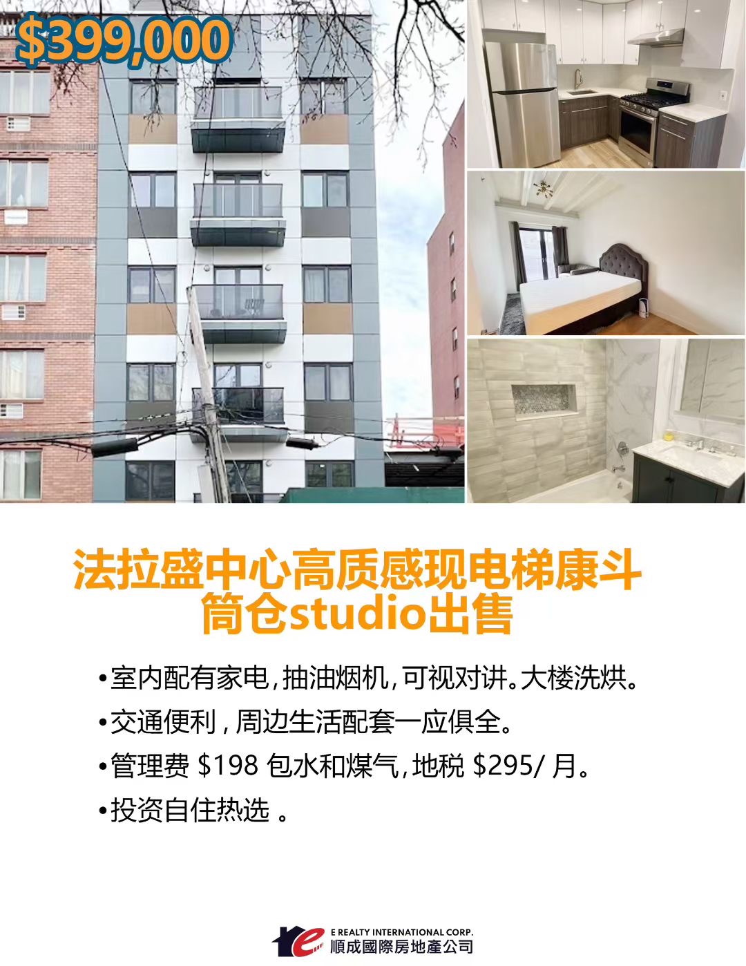 法拉盛中心高质感现电梯康斗筒仓studio出售