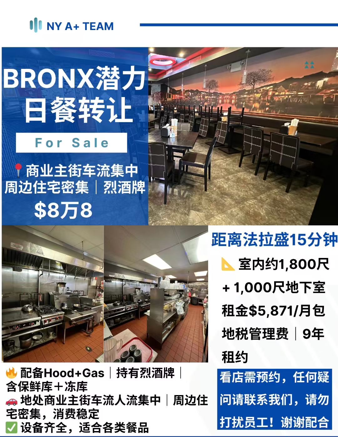 📍【Bronx布朗士高潜力日餐转让|距离法拉盛仅15分钟车程】转让费$8万8