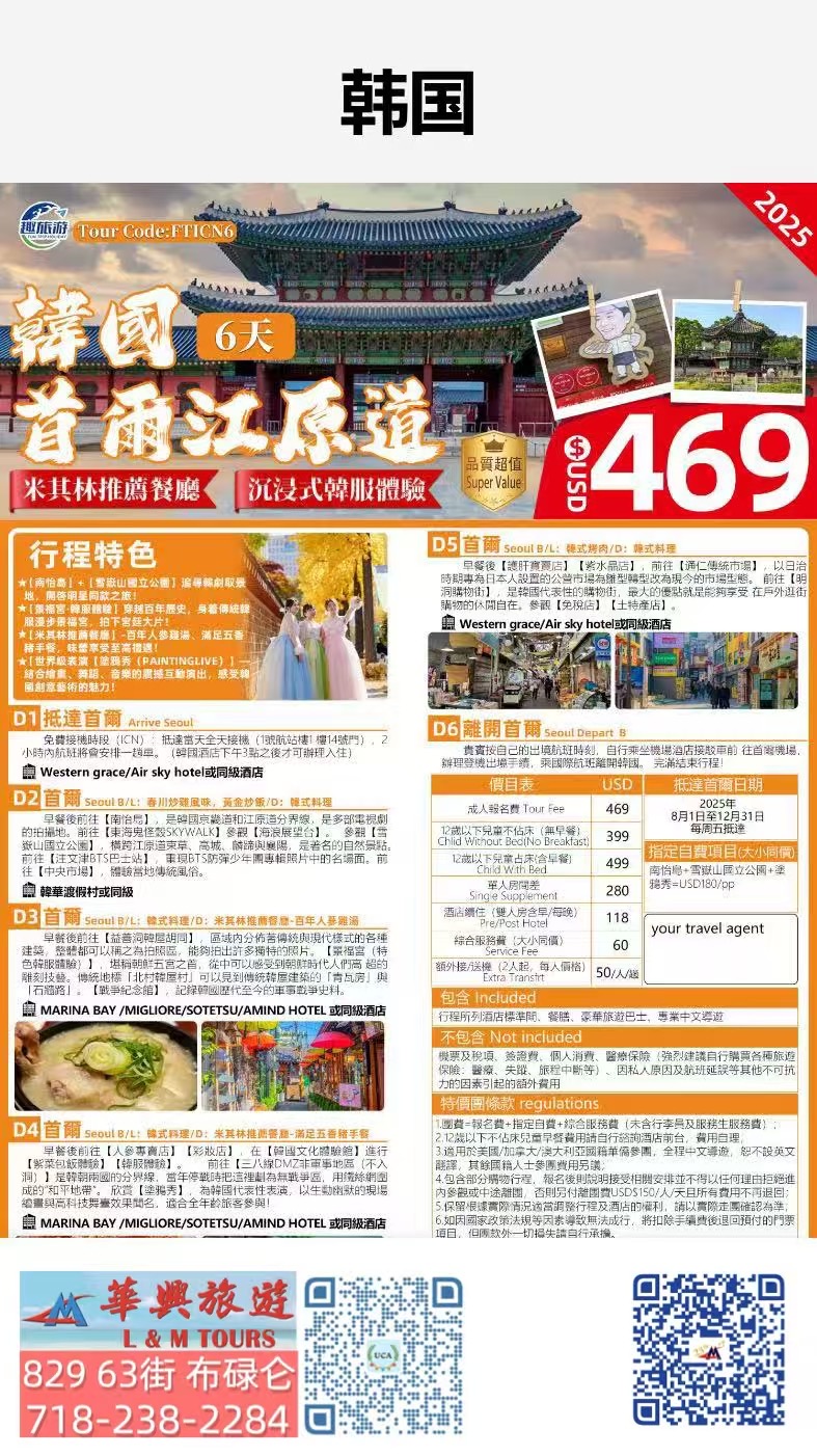 📍韩国首尔江原道品质𝟲天 $𝟰𝟲𝟵📆出发日期:每周五抵达