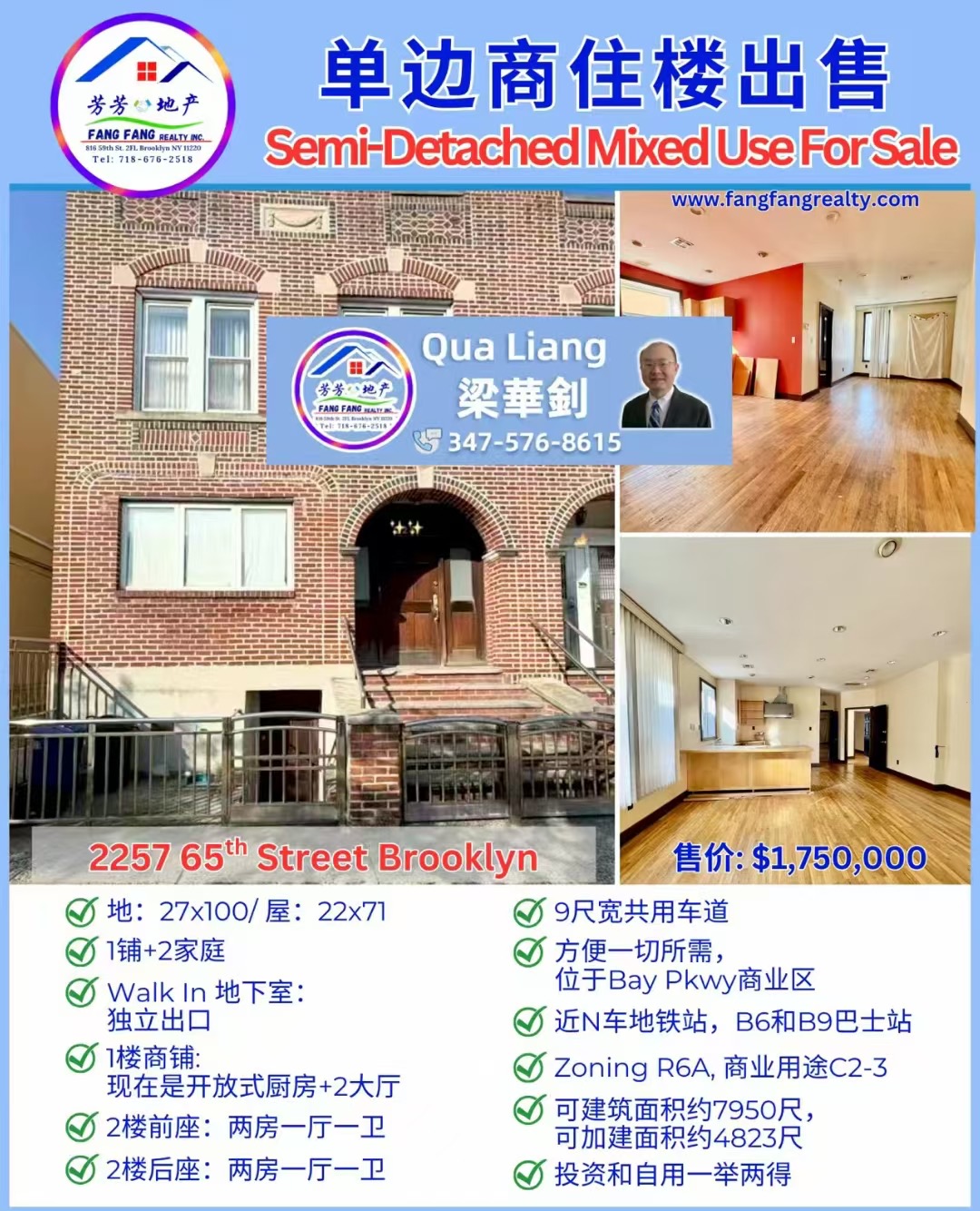🎉Bay Pkwy 单边商住楼出售📍2257 65th St Brooklyn NY