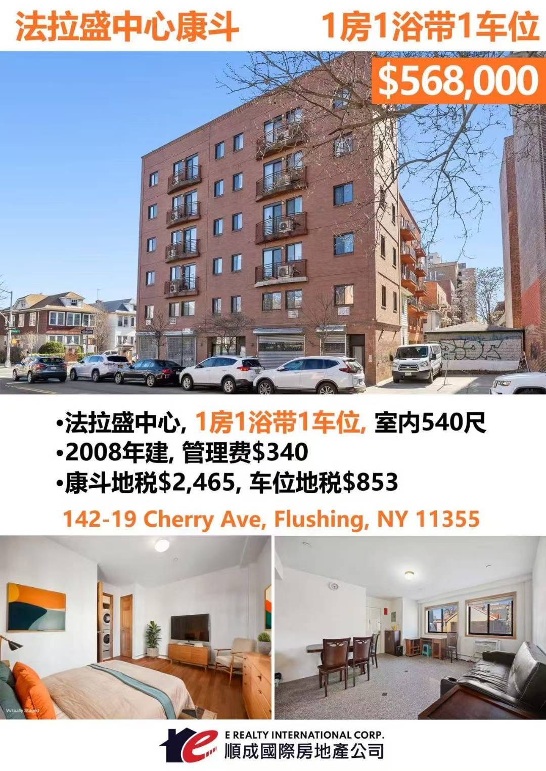 🔥法拉盛中心1 房康斗帶車位出售 $568,000