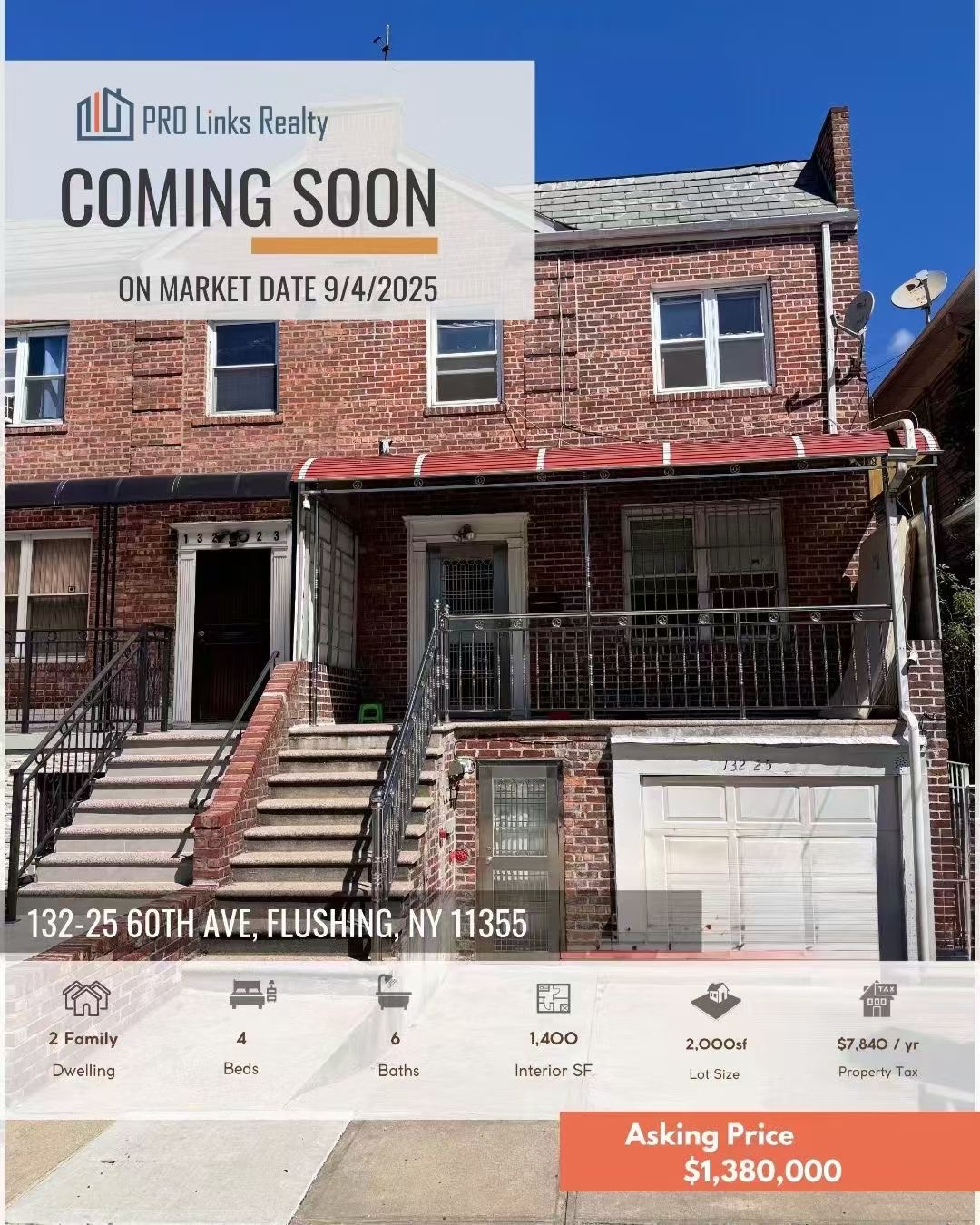 🔥法拉盛独家上市|单边全砖两家庭 🧧收租神器|家兴地产独家代理🔥