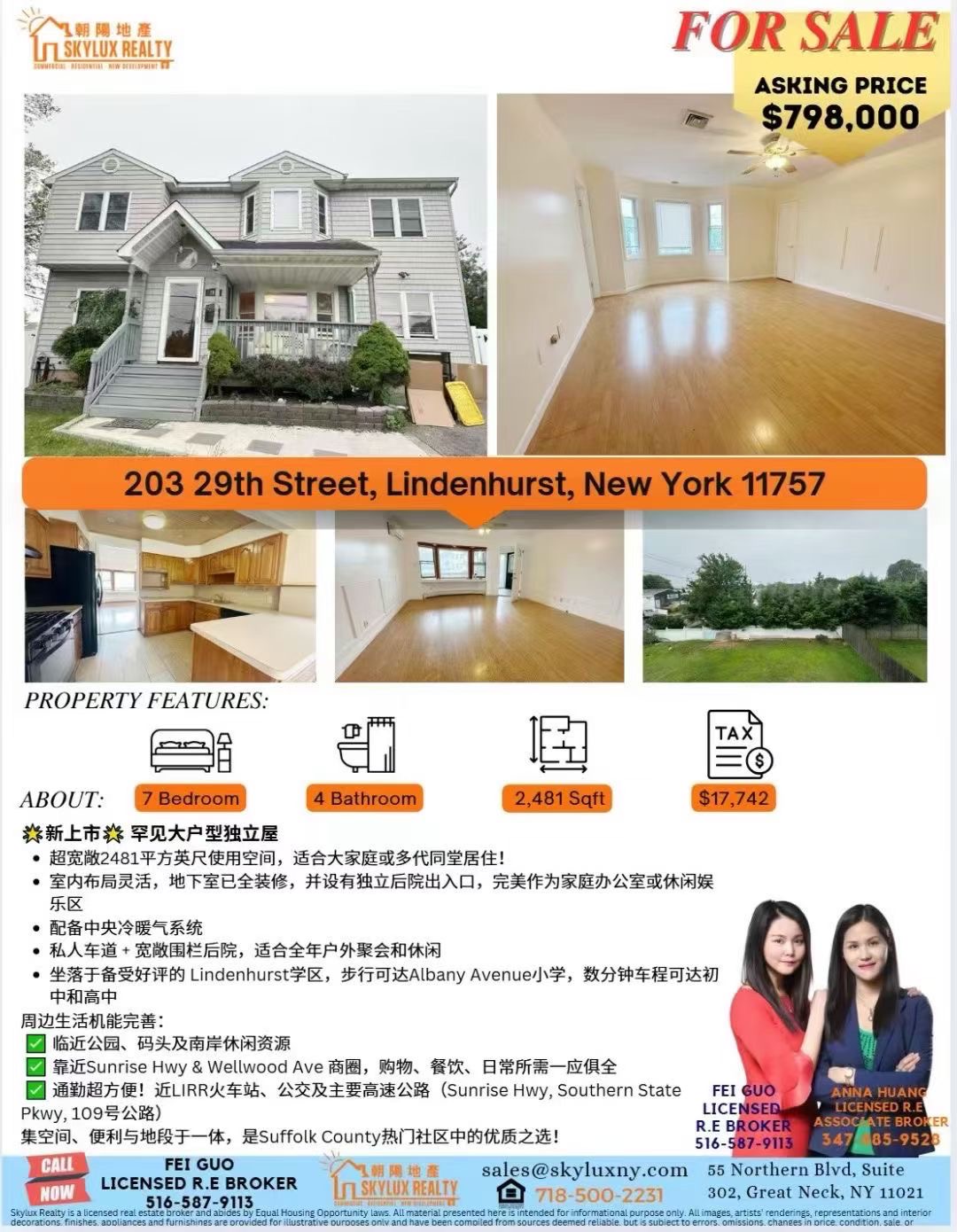 🌟 长岛Lindenhurst罕见大户型独立屋出售|超大空间、多代同堂首选、学区房热选 🌟